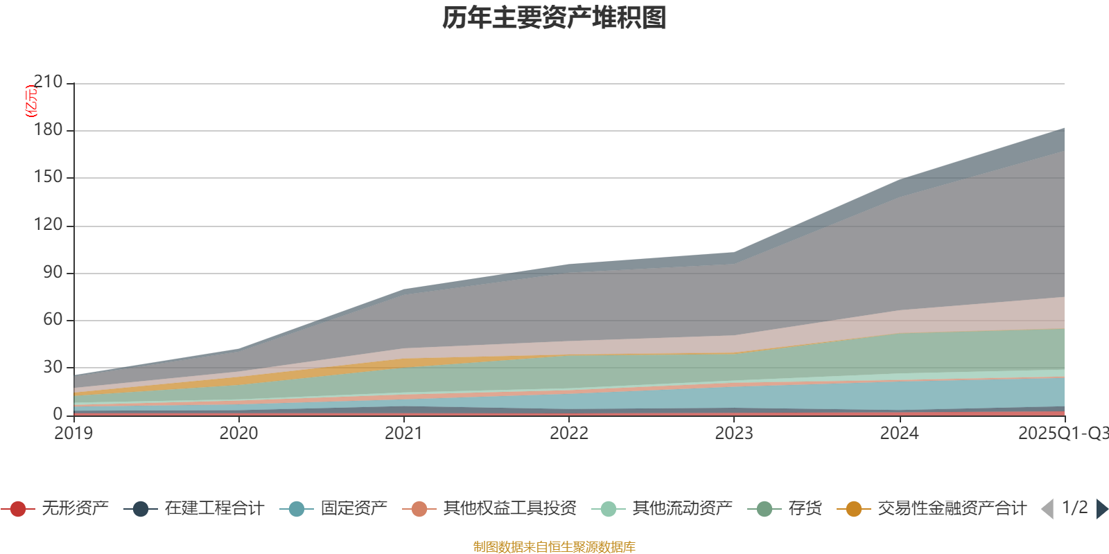 资产重大变化方面,截至2025年三季度末,公司货币资金较上年末增加29.19%,占公司总资产比重上升2.86个百分点;存货较上年末增加2.13%,占公司总资产比重下降2.76个百分点;固定资产较上年末减少0.39%,占公司总资产比重下降2.22个百分点;应收票据及应收账款较上年末增加37.96%,占公司总资产比重上升1.28个百分点。