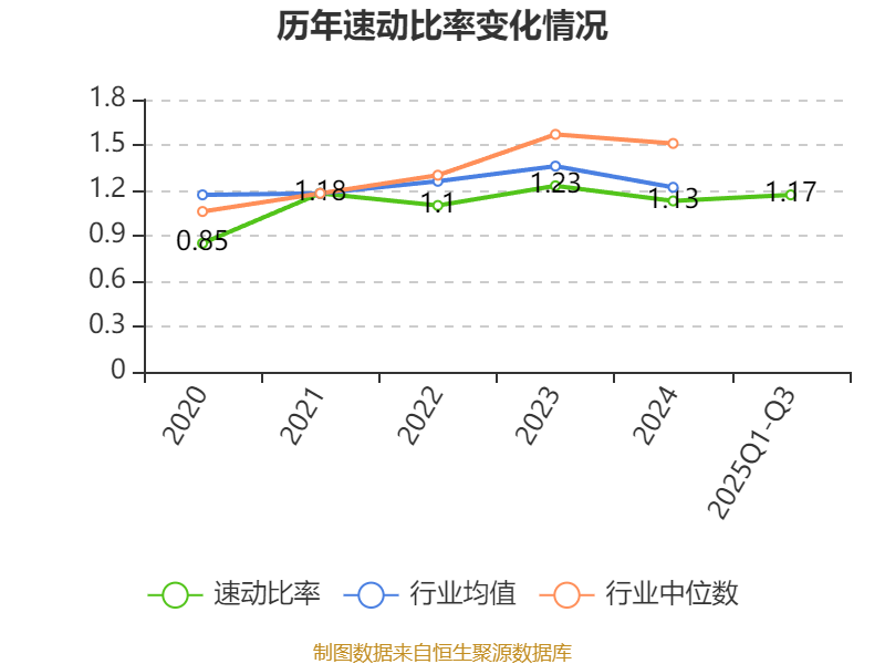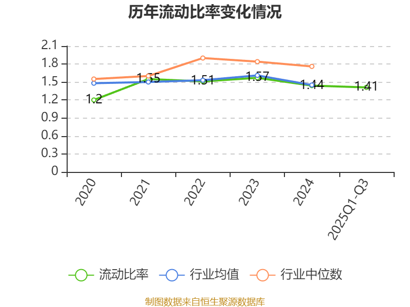 2025年前三季度,公司流动比率为1.41,速动比率为1.17。