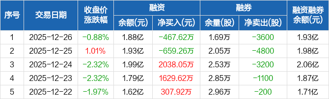 春风动力:融资净偿还467.62万元,融资余额1.88亿元(12-26)