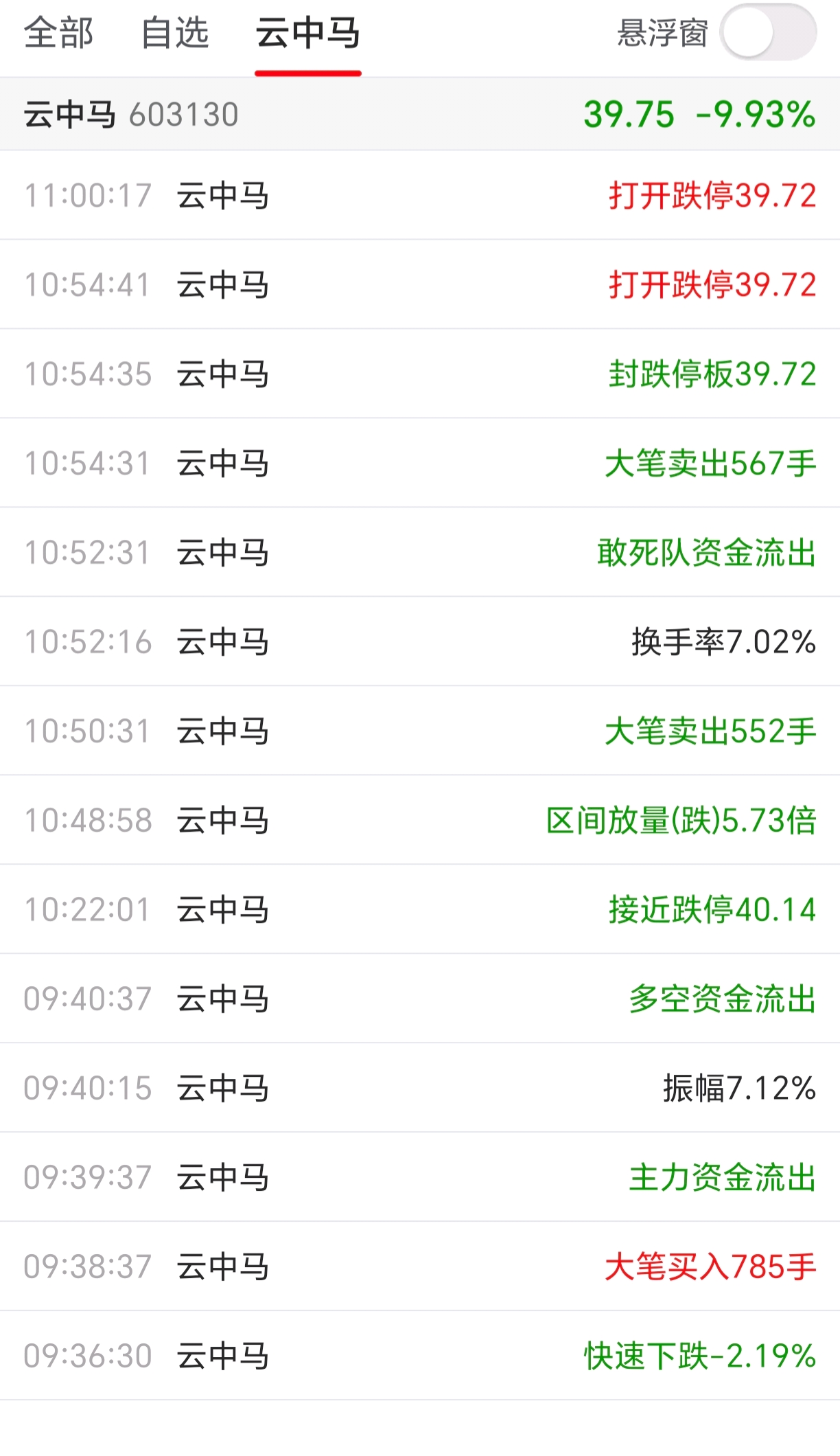 $云中马(SH603130)$ 直接跌停磨磨唧唧的