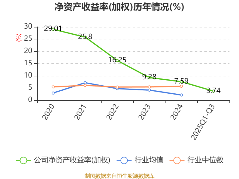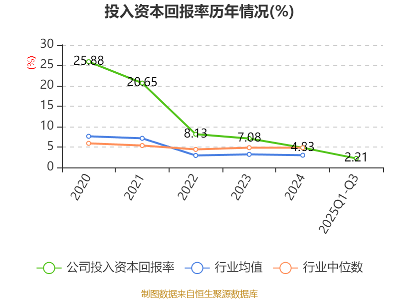 盈利能力方面, 2025年前三季度公司加权平均净资产收益率为3.74%,同比下降1.35个百分点。公司2025年前三季度投入资本回报率为2.21%,较上年同期下降1.12个百分点。