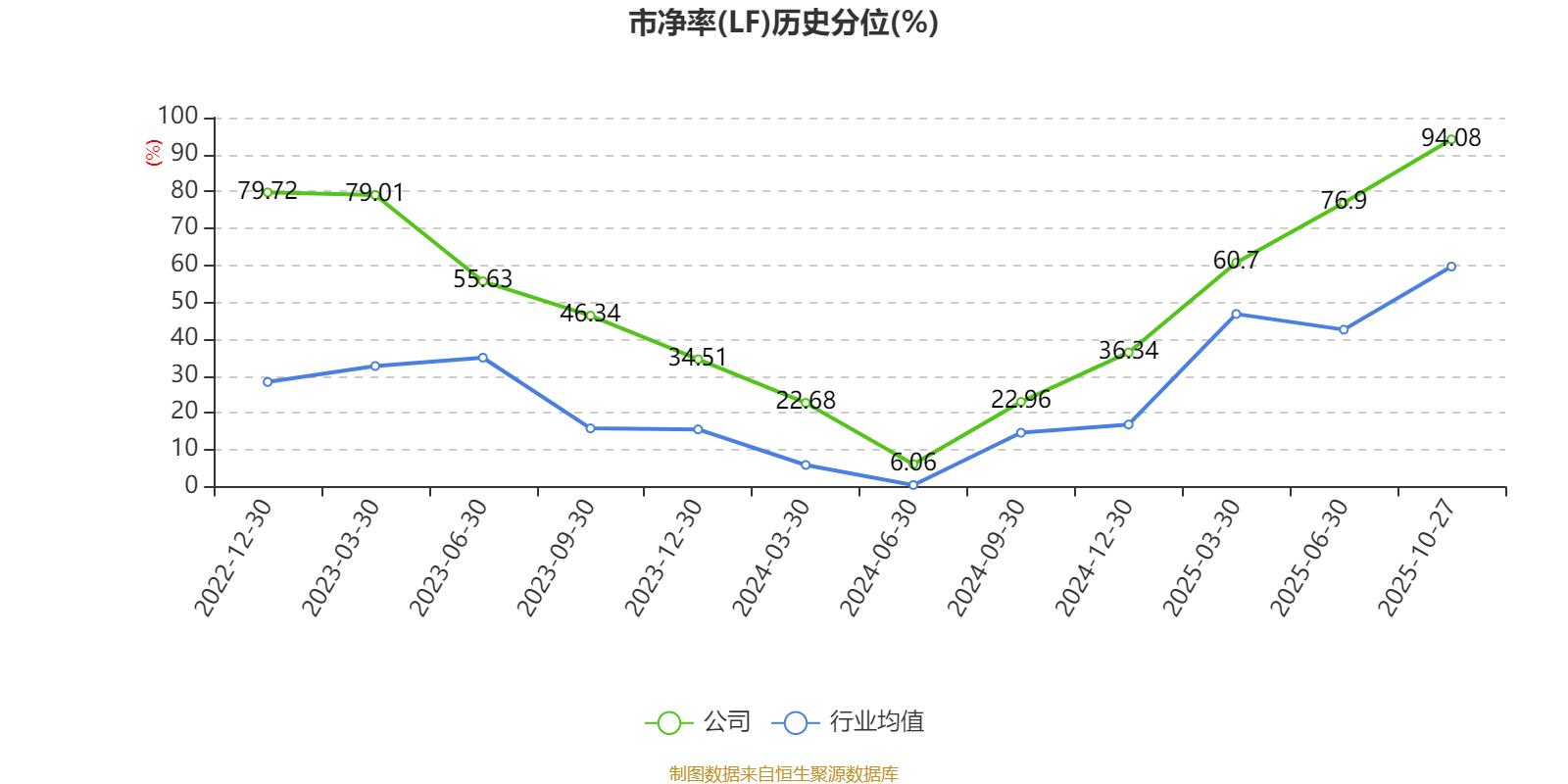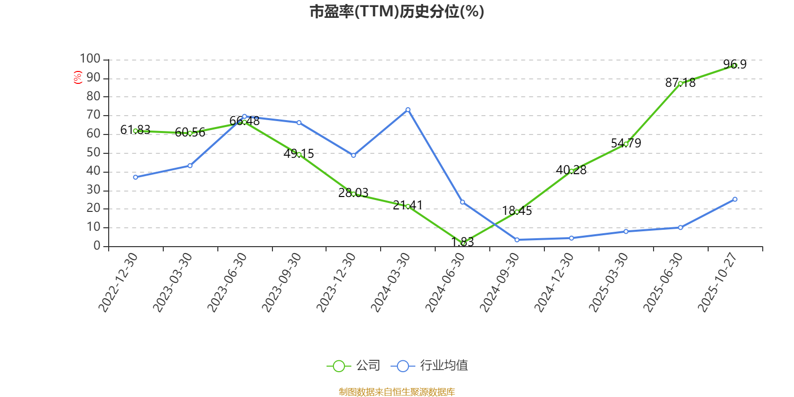 市盈率、市净率为负时,不显示当期分位数,会导致折线图中断。
