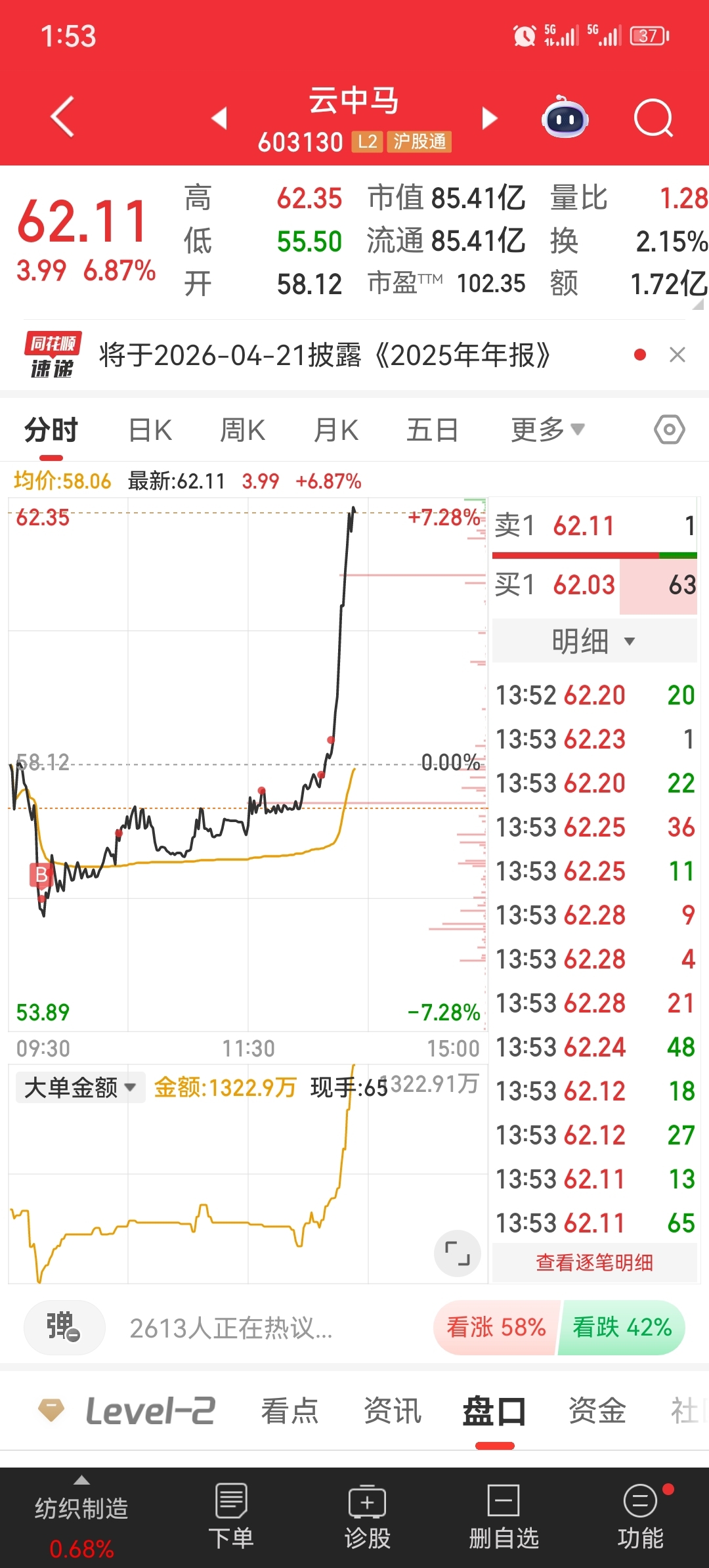 $云中马(SH603130)$ 最成功一次,下周平开就跑路