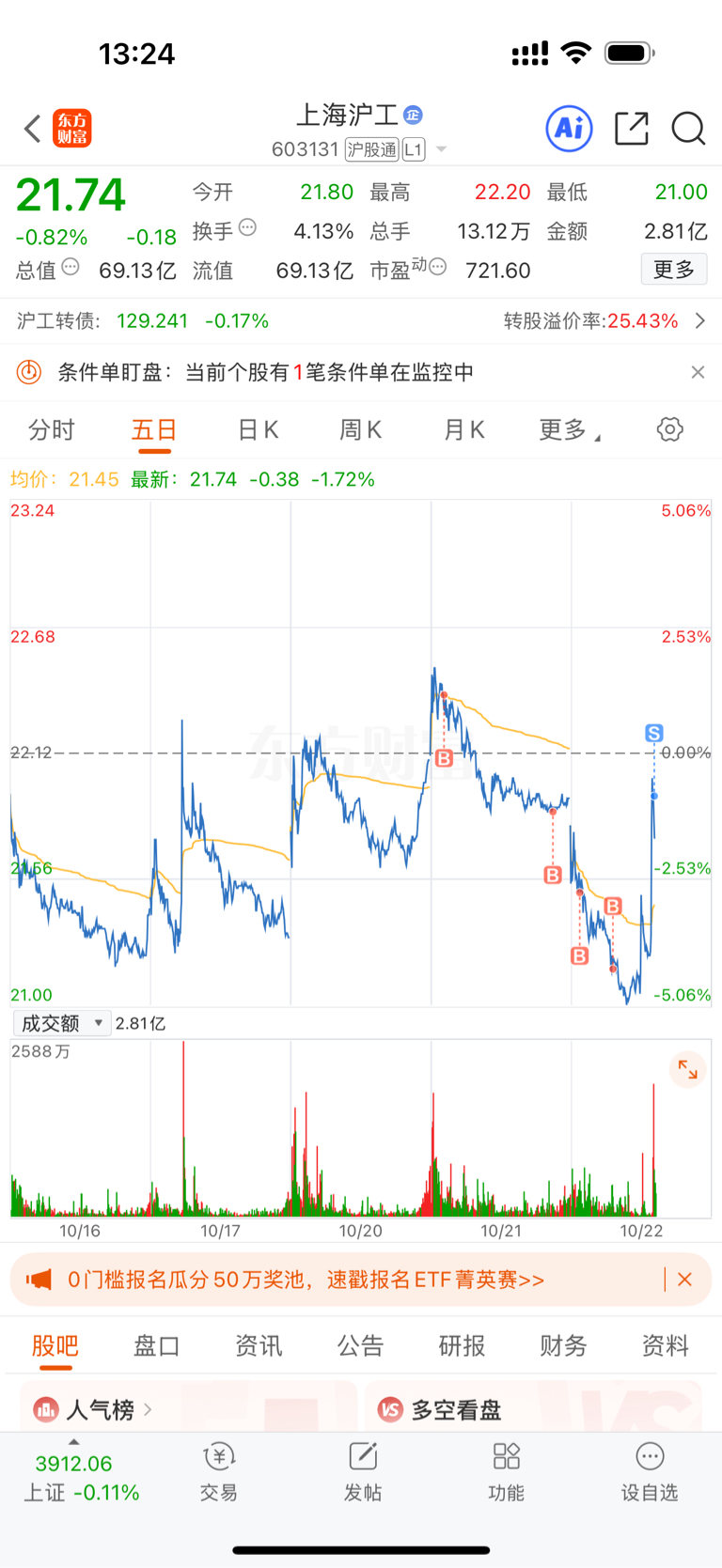 $上海沪工(SH603131)$ 刺激,一直补到重仓