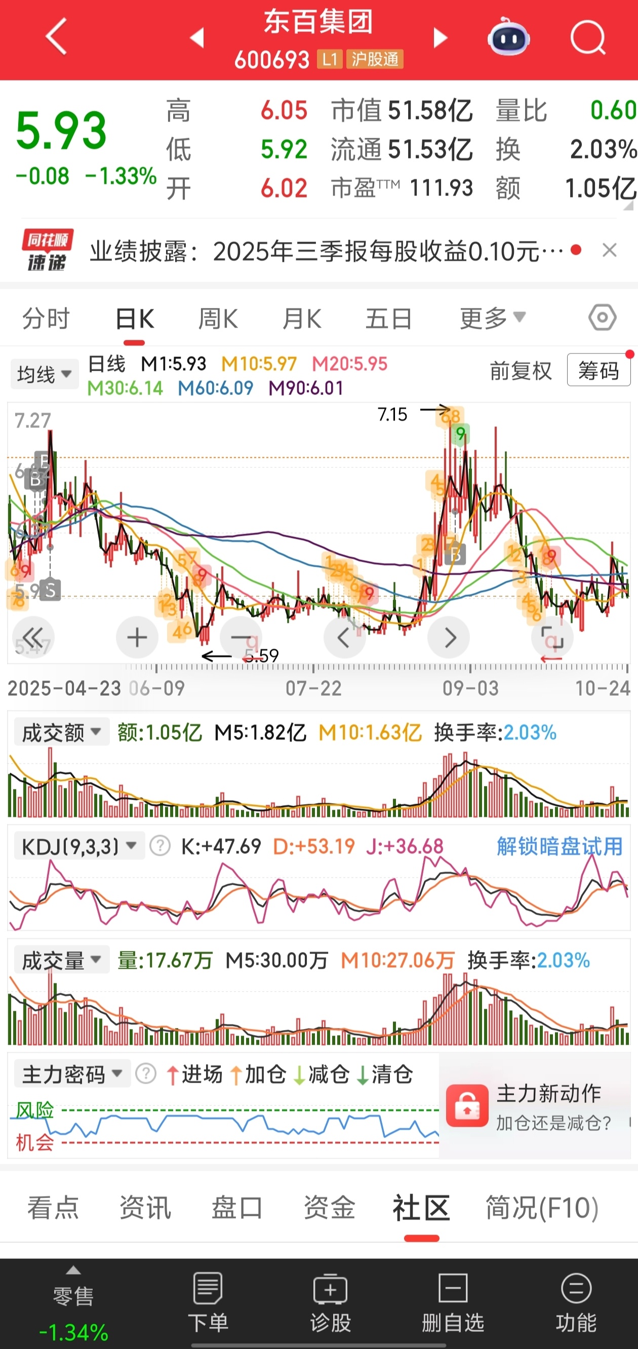 $东百集团(SH600693)$ 九月份入的消费,提前布局你,为什么东百你可以跌一个月,10月份还能跌?东百集团我是看中报业绩好,才继续拿的,业绩好的继续跌吗?@漏鱼丧犬