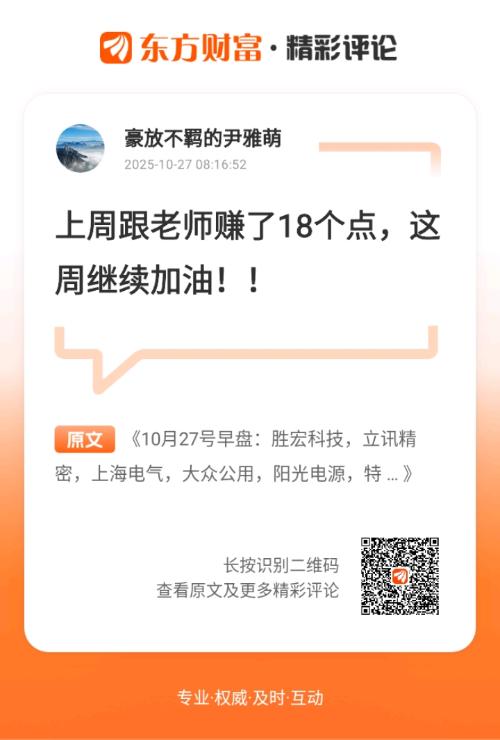 发表于 2025-10-27 09:59:05 东方财富Android版 发布于 广东