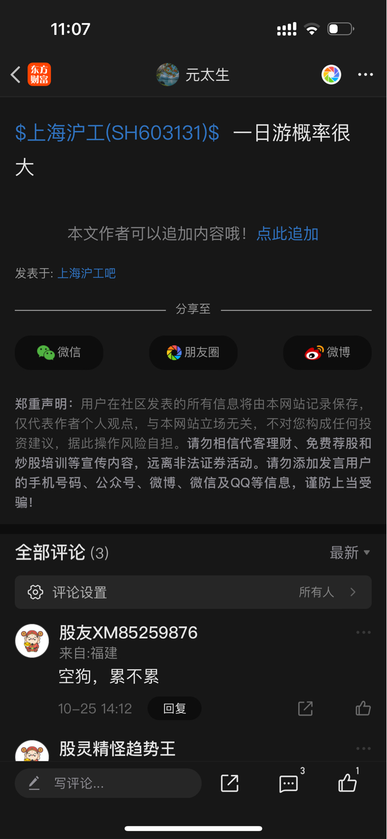 温馨提示: 1.根据《证券法》规定,禁止编造、传播虚假信息或者误导性信息,扰乱证券市场;2.用户在本社区发表的所有资料、言论等仅代表个人观点,与本网站立场无关,不对您构成任何投资建议。用户应基于自己的独立判断,自行决定证券投资并承担相应风险。《东方财富社区管理规定》