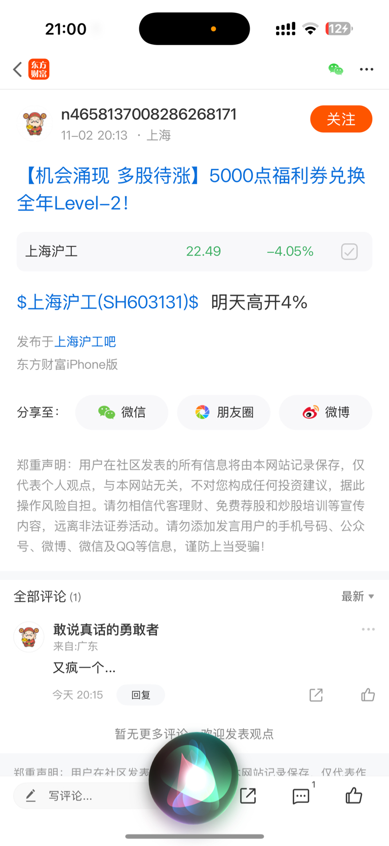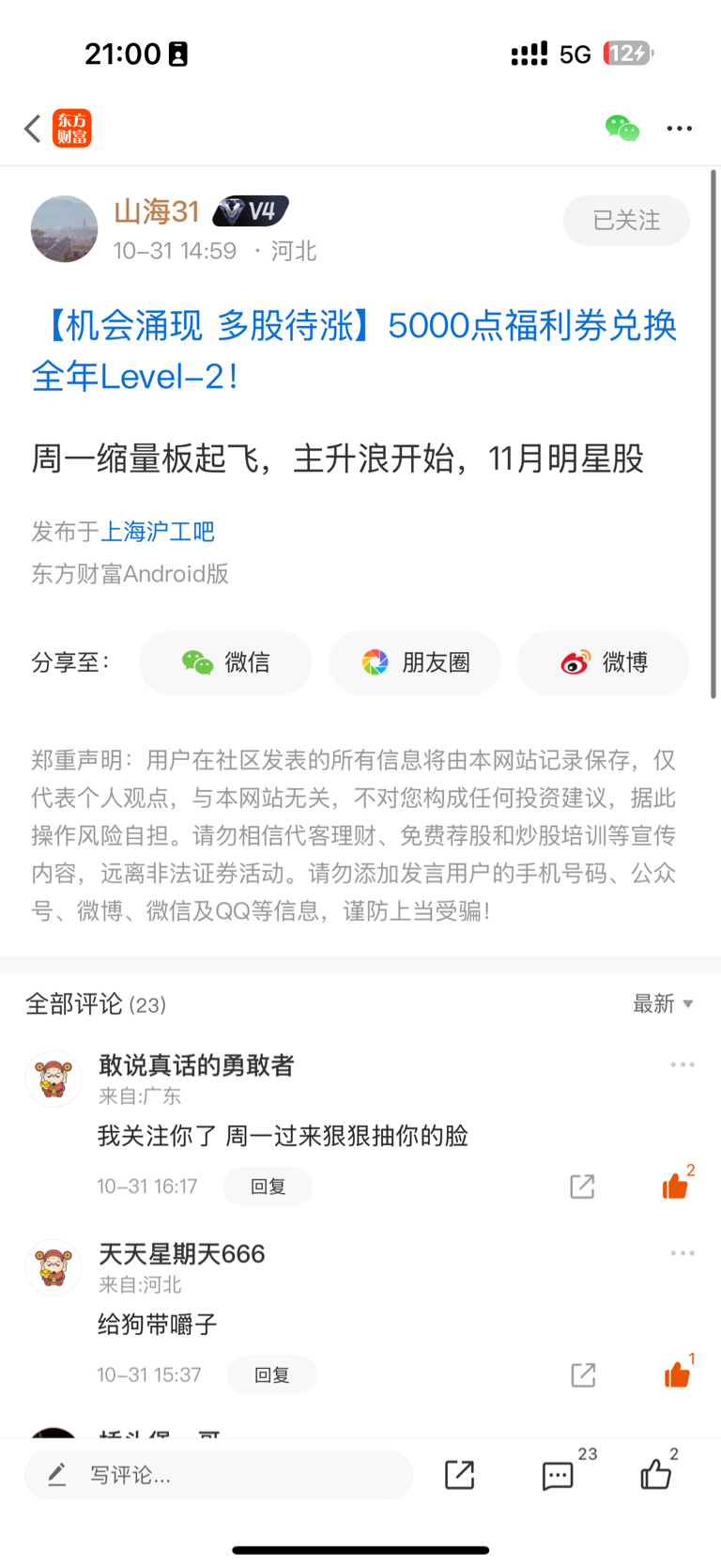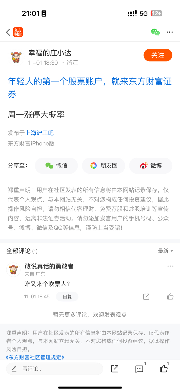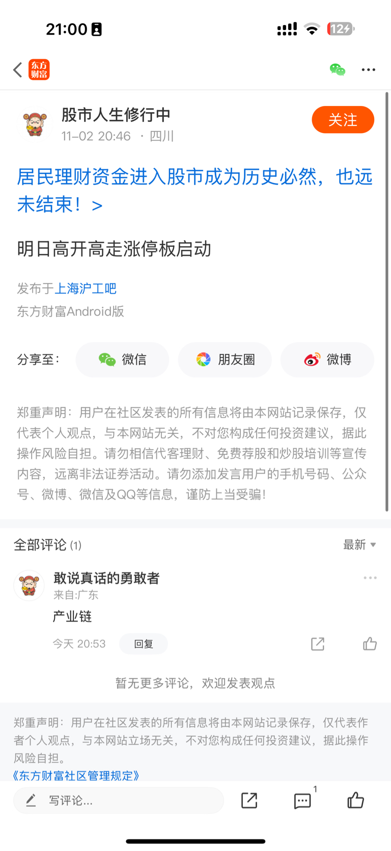 温馨提示: 1.根据《证券法》规定,禁止编造、传播虚假信息或者误导性信息,扰乱证券市场;2.用户在本社区发表的所有资料、言论等仅代表个人观点,与本网站立场无关,不对您构成任何投资建议。用户应基于自己的独立判断,自行决定证券投资并承担相应风险。《东方财富社区管理规定》