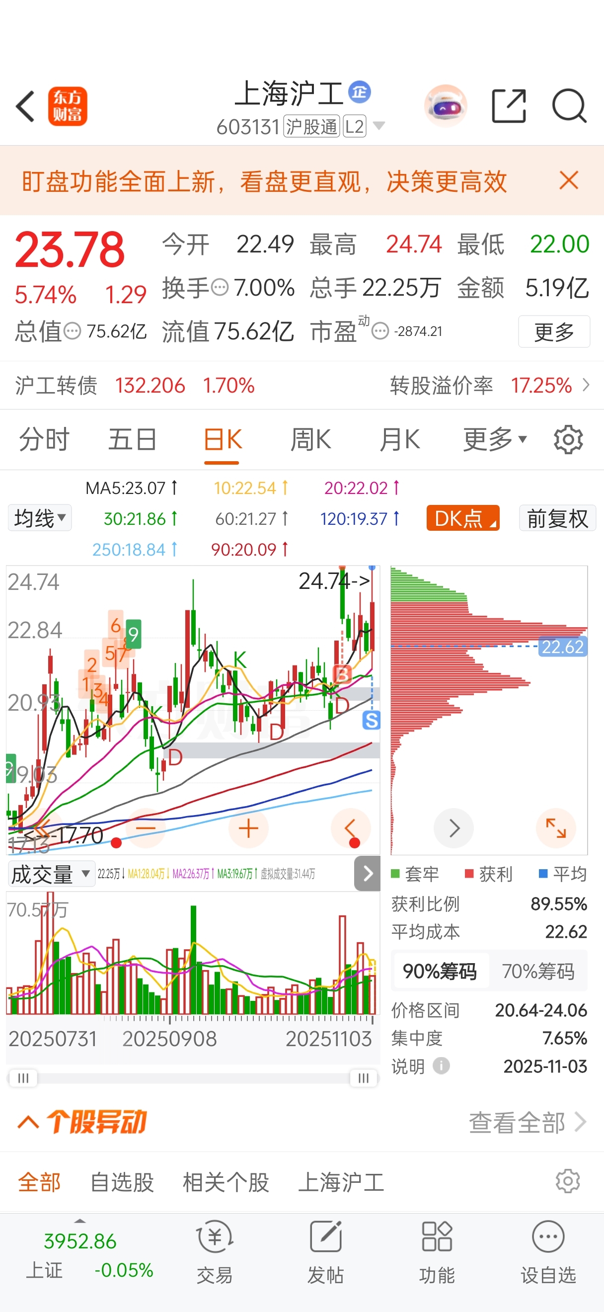 $上海沪工(SH603131)$ 要不要接回来。。。