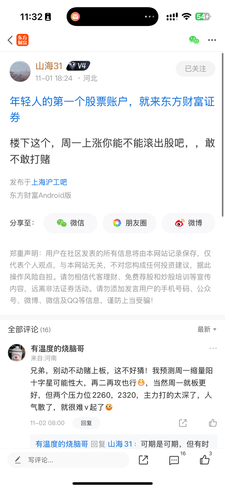 温馨提示: 1.根据《证券法》规定,禁止编造、传播虚假信息或者误导性信息,扰乱证券市场;2.用户在本社区发表的所有资料、言论等仅代表个人观点,与本网站立场无关,不对您构成任何投资建议。用户应基于自己的独立判断,自行决定证券投资并承担相应风险。《东方财富社区管理规定》