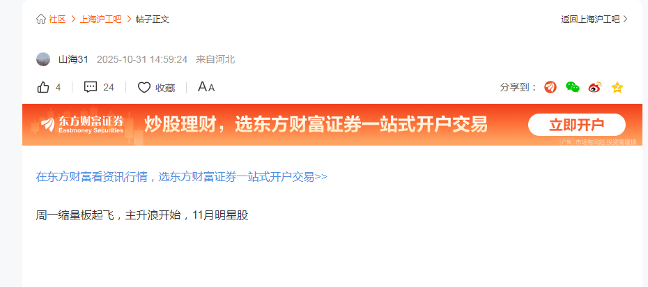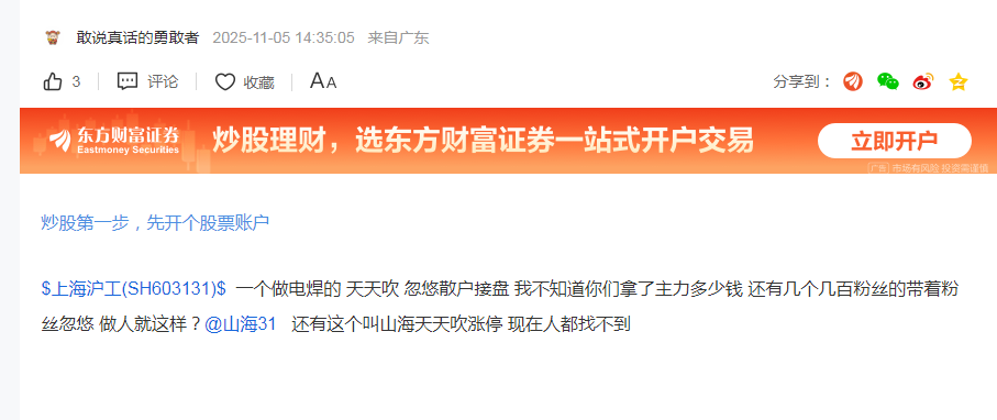 温馨提示: 1.根据《证券法》规定,禁止编造、传播虚假信息或者误导性信息,扰乱证券市场;2.用户在本社区发表的所有资料、言论等仅代表个人观点,与本网站立场无关,不对您构成任何投资建议。用户应基于自己的独立判断,自行决定证券投资并承担相应风险。《东方财富社区管理规定》