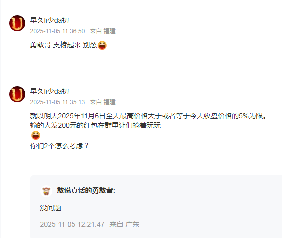 号外号外山海胸&勇敢胸2位大佬斗法山海胸:明天涨>=5%勇敢胸:不可能豆猪200