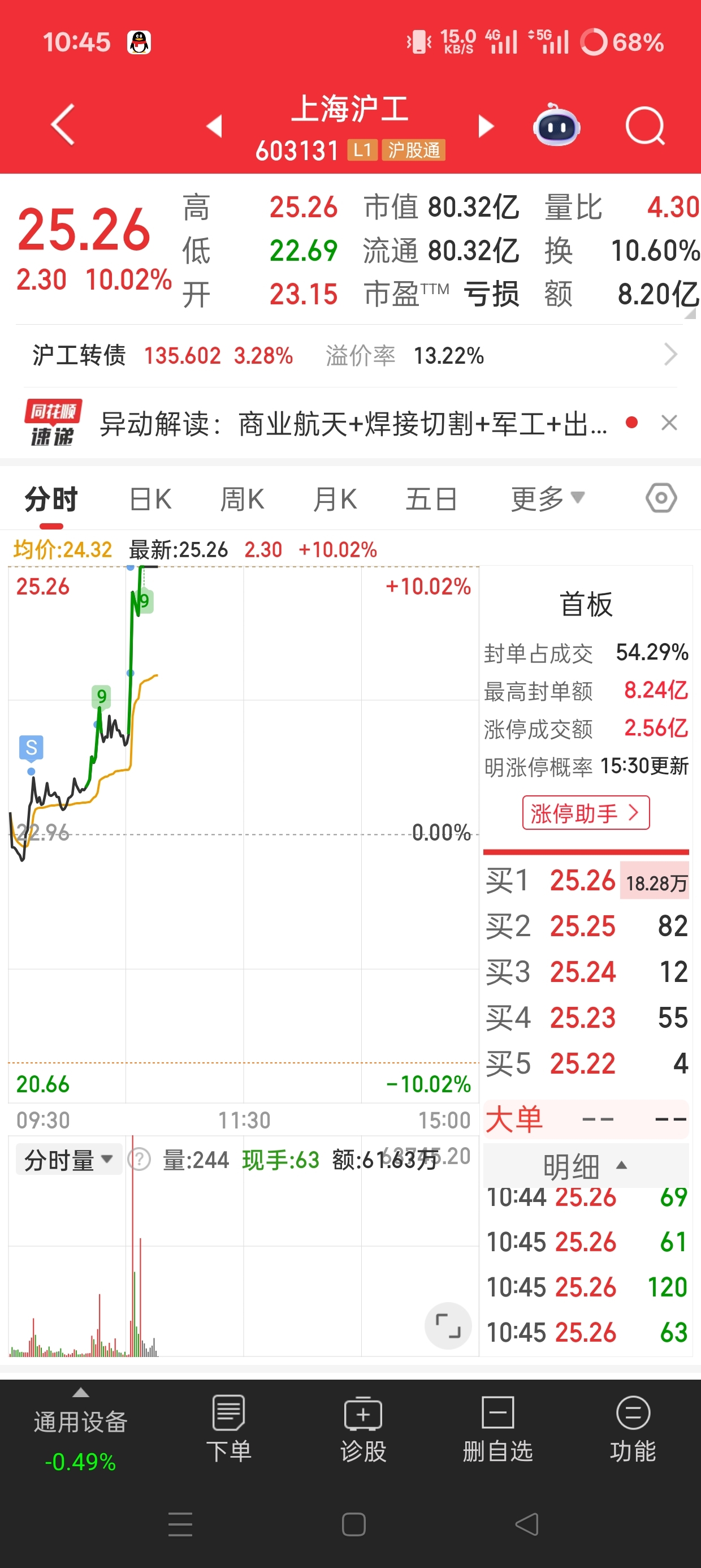 $上海沪工(SH603131)$ 还行,只剩底仓了,加了三天的仓,虽然可能会卖飞,但是带着利润走永远都不会亏