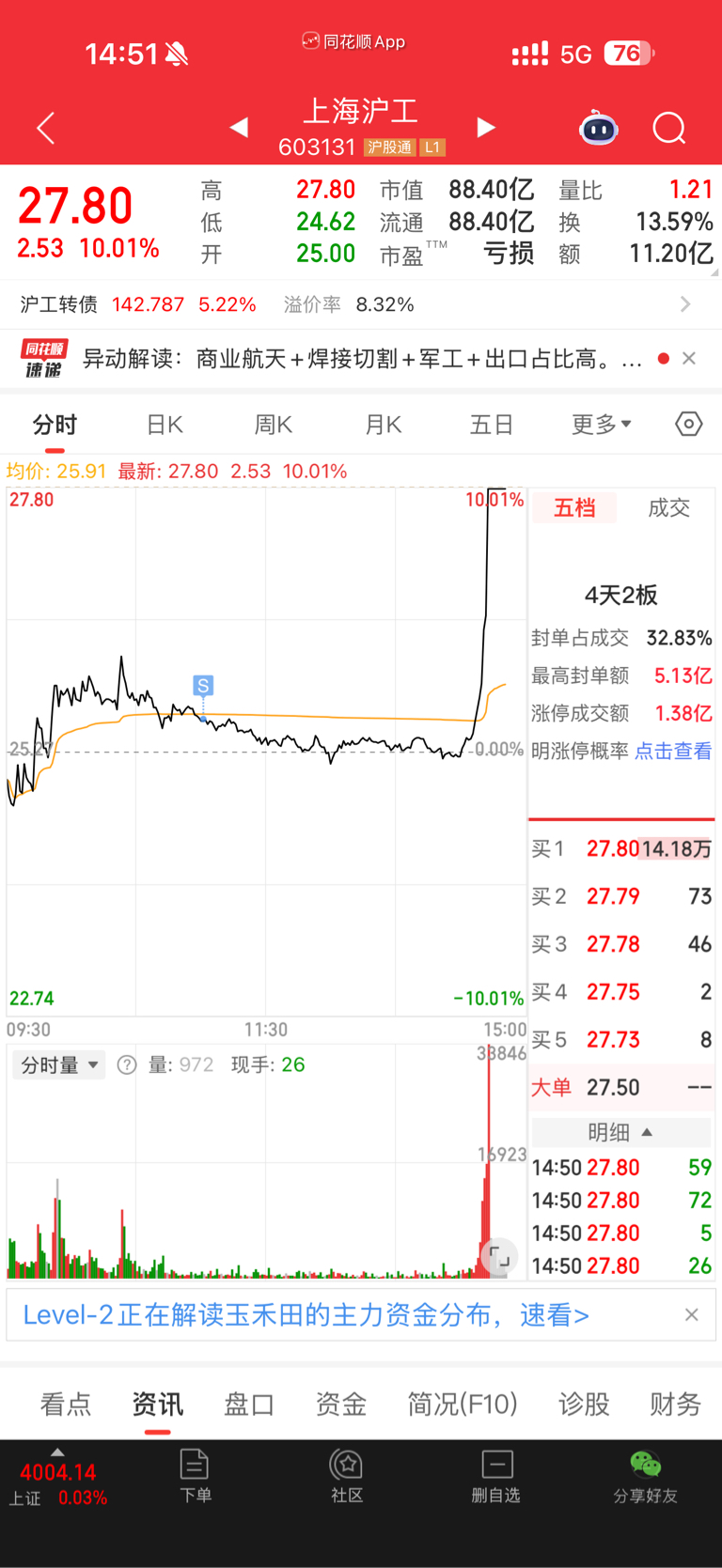 $上海沪工(SH603131)$ ???跟吃了x一样
