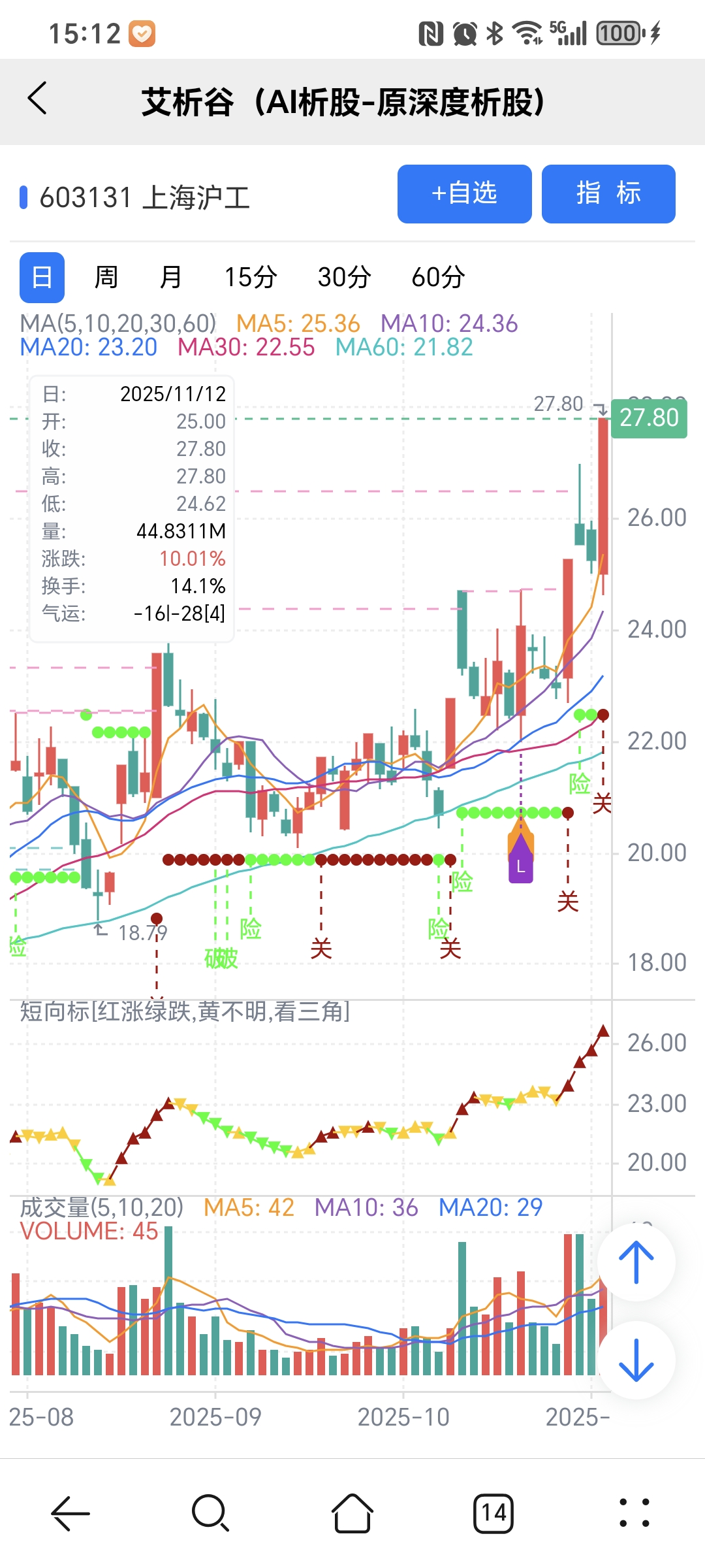 红绿小圆点是艾析谷的量化指标-超级短趋线,是趋势跟踪+突破类的量化指标,完全免费。