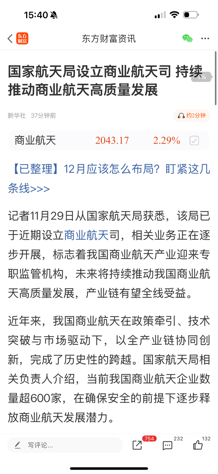 今天新闻联播估计又得说商业航天司的事儿,最近审美疲劳了,经常上也不涨