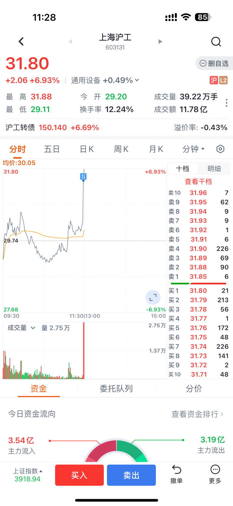 $上海沪工(SH603131)$ 兄弟们,我今天上当了...