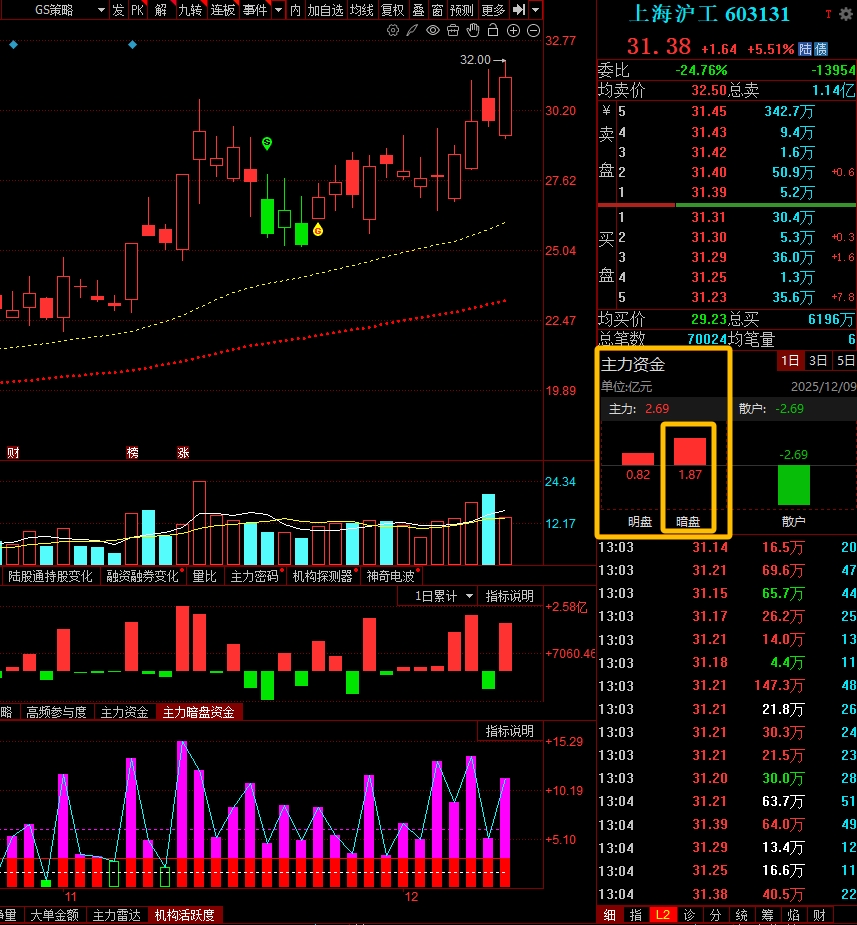 $上海沪工(SH603131)$ 资金大幅流入,干就完了