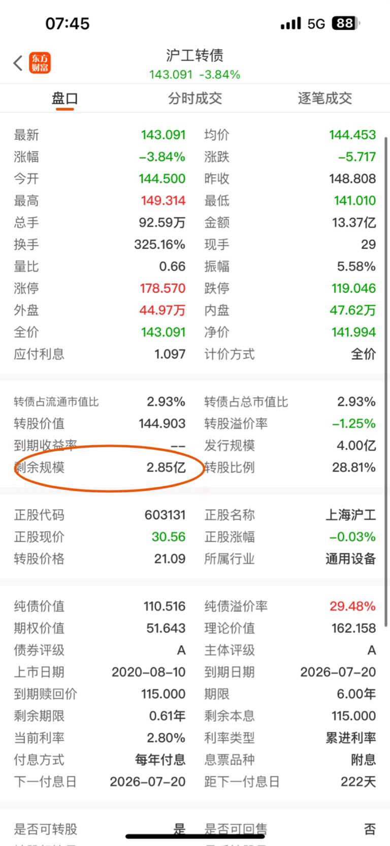 前一日是3.48亿,今天就剩2.85亿了,最晚转股6000多万,这些一开盘就会形