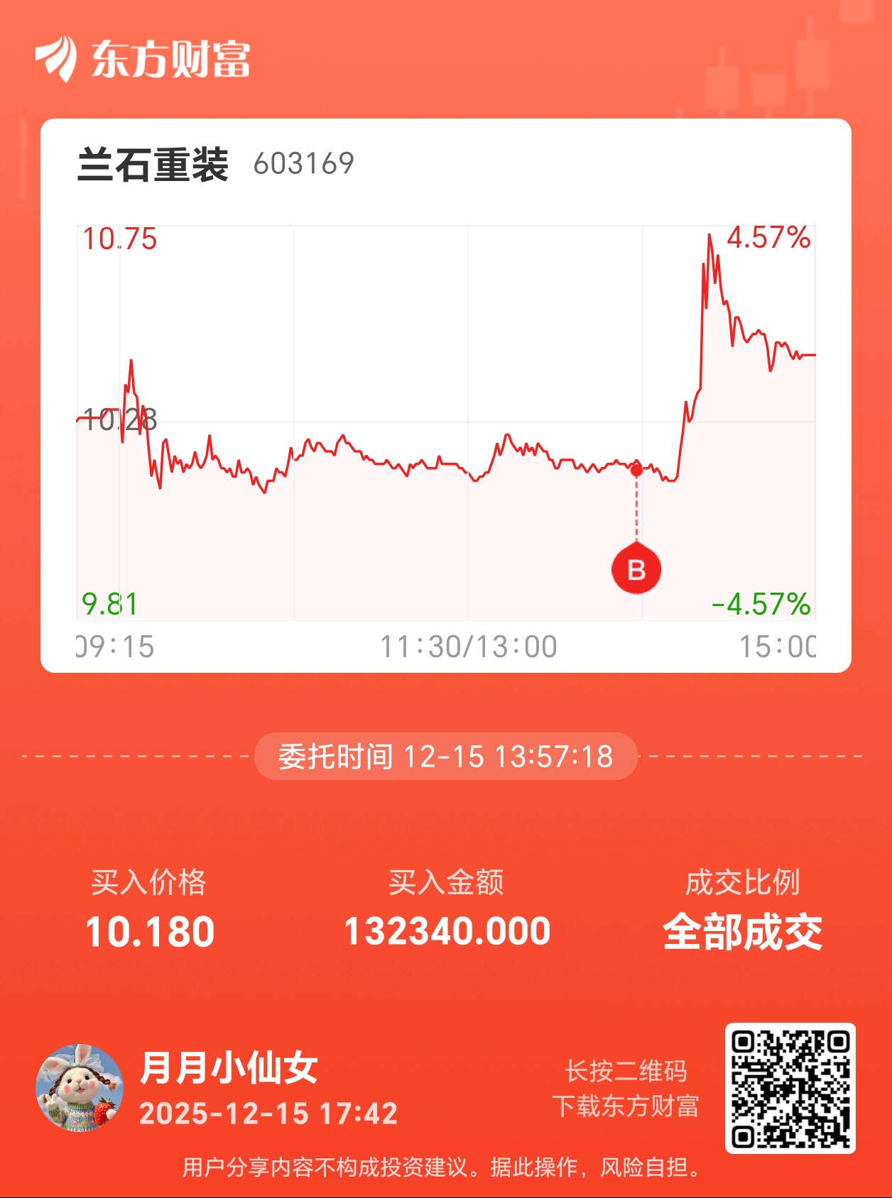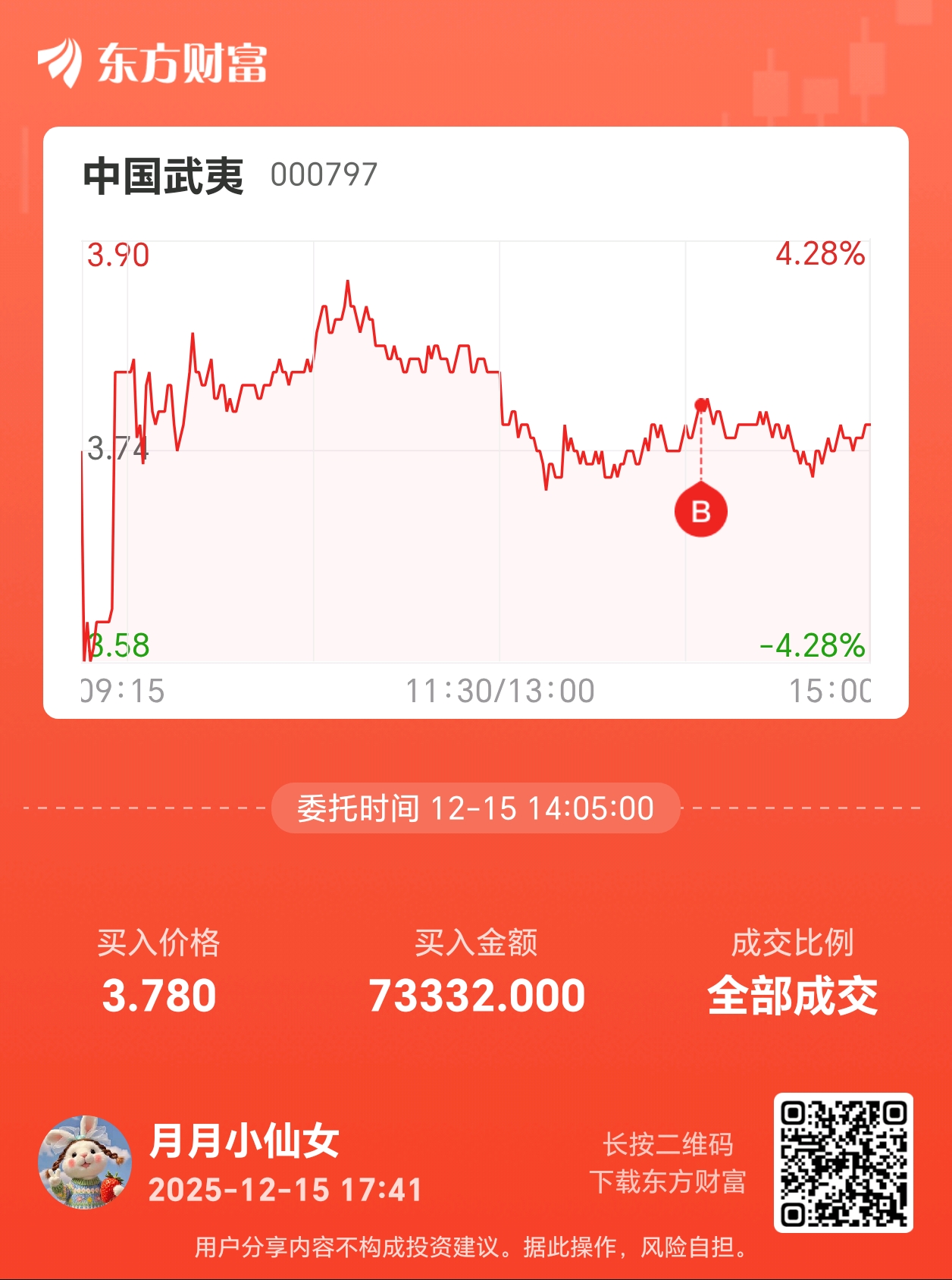 温馨提示: 1.根据《证券法》规定,禁止编造、传播虚假信息或者误导性信息,扰乱证券市场;2.用户在本社区发表的所有资料、言论等仅代表个人观点,与本网站立场无关,不对您构成任何投资建议。用户应基于自己的独立判断,自行决定证券投资并承担相应风险。《东方财富社区管理规定》