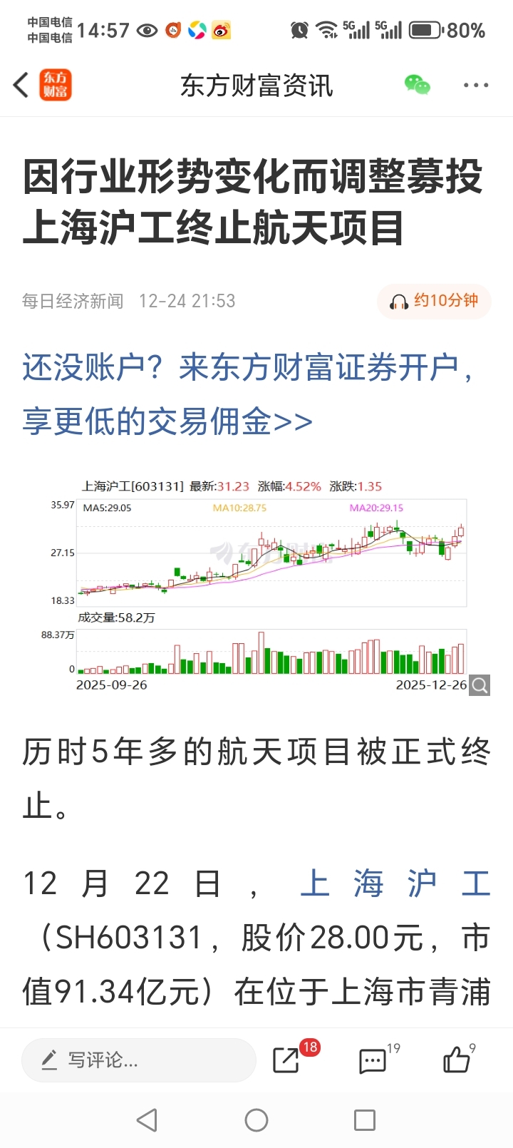 $上海沪工(SH603131)$ 都终止航天项目了,还涨啥呢