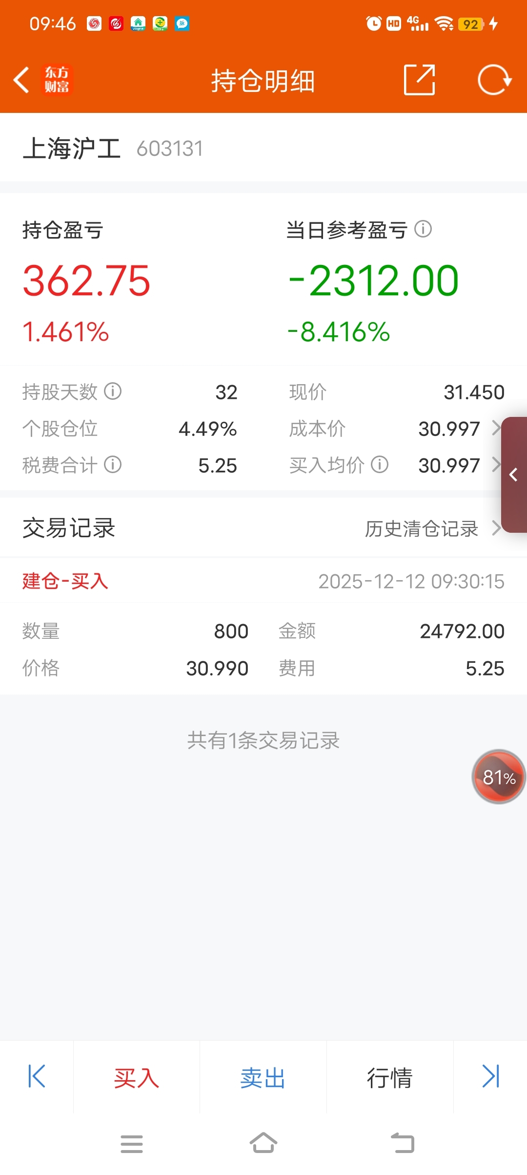 $上海沪工(SH603131)$ 持仓32天,收益满满