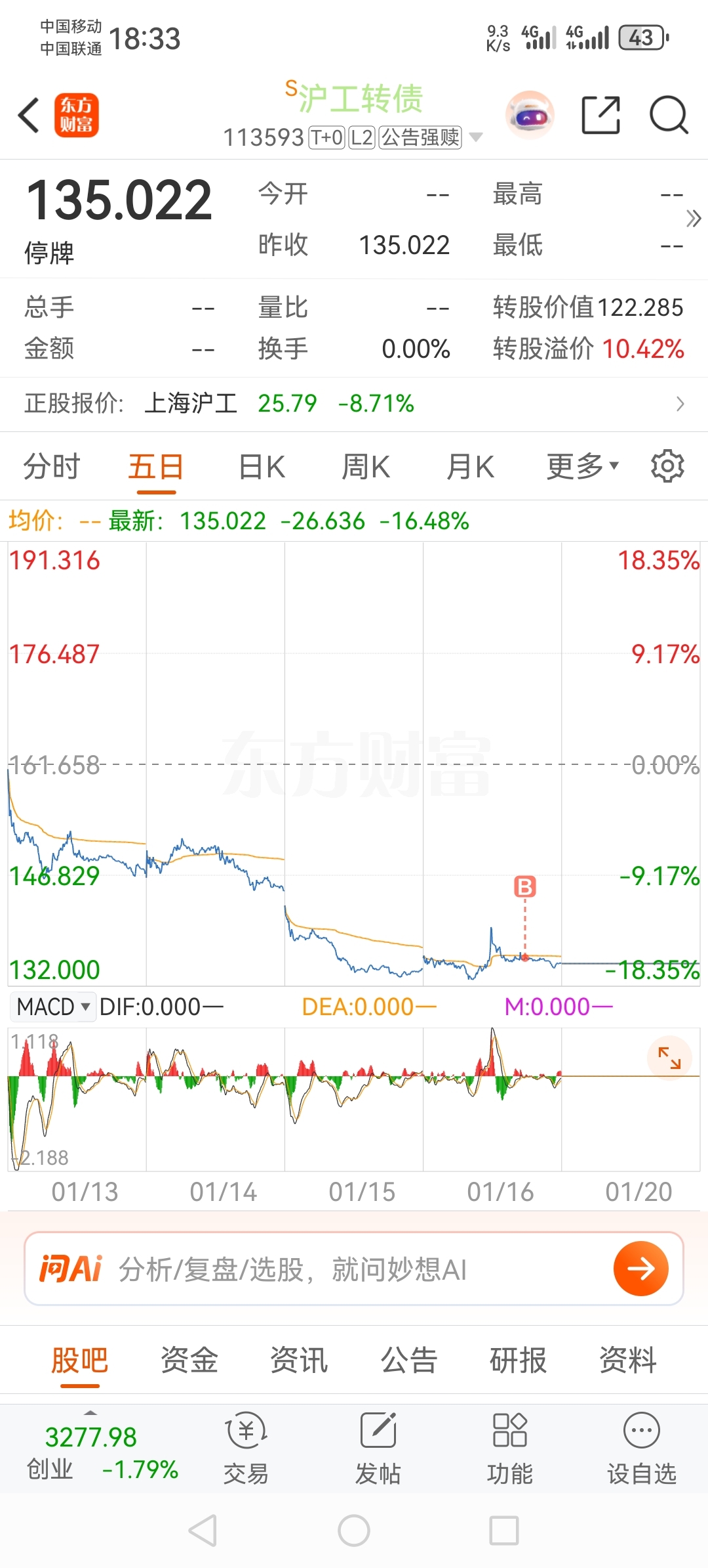 $上海沪工(SH603131)$ 人家公司转股能赚钱 你这送太厉害了 红10个点溢价