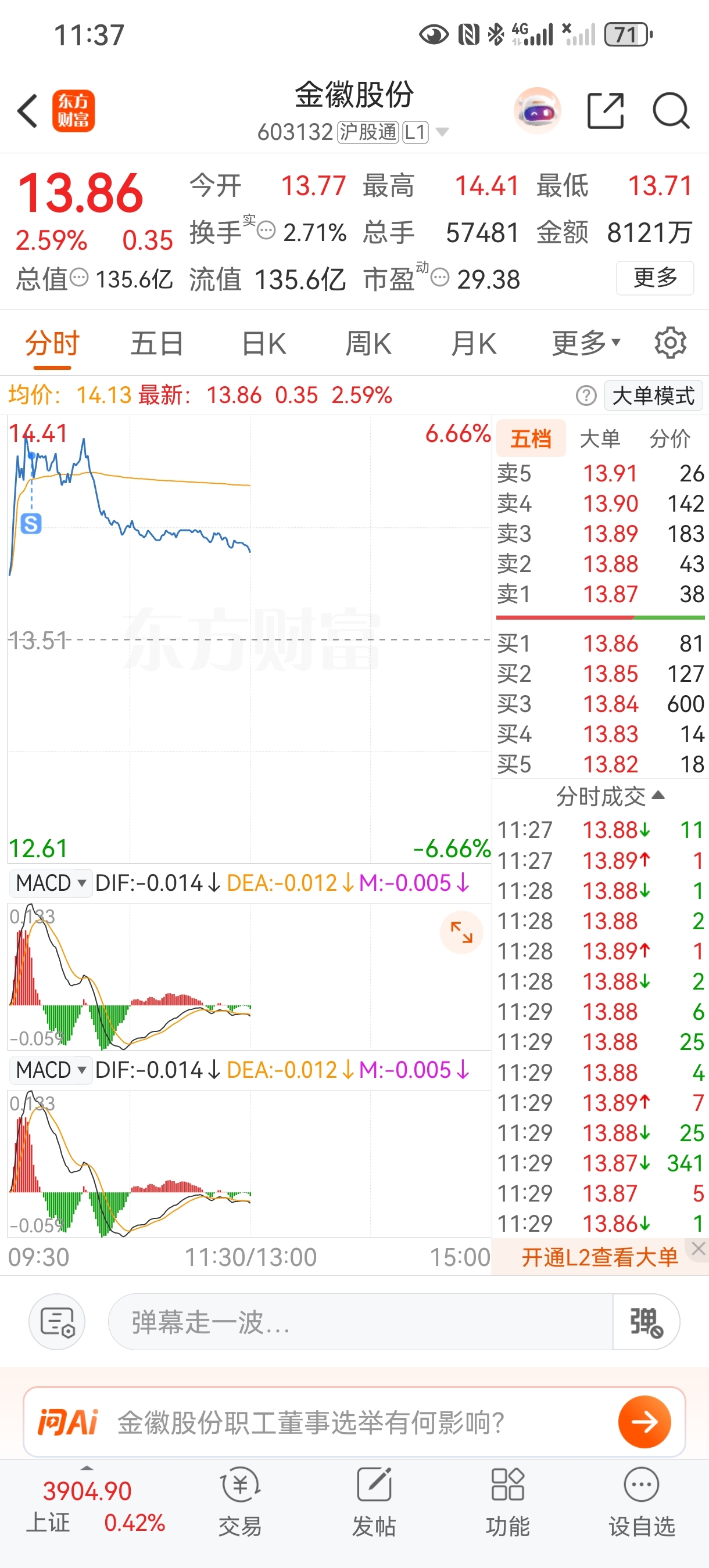 $金徽股份(SH603132)$ 早已经摸清这个小的秉性。