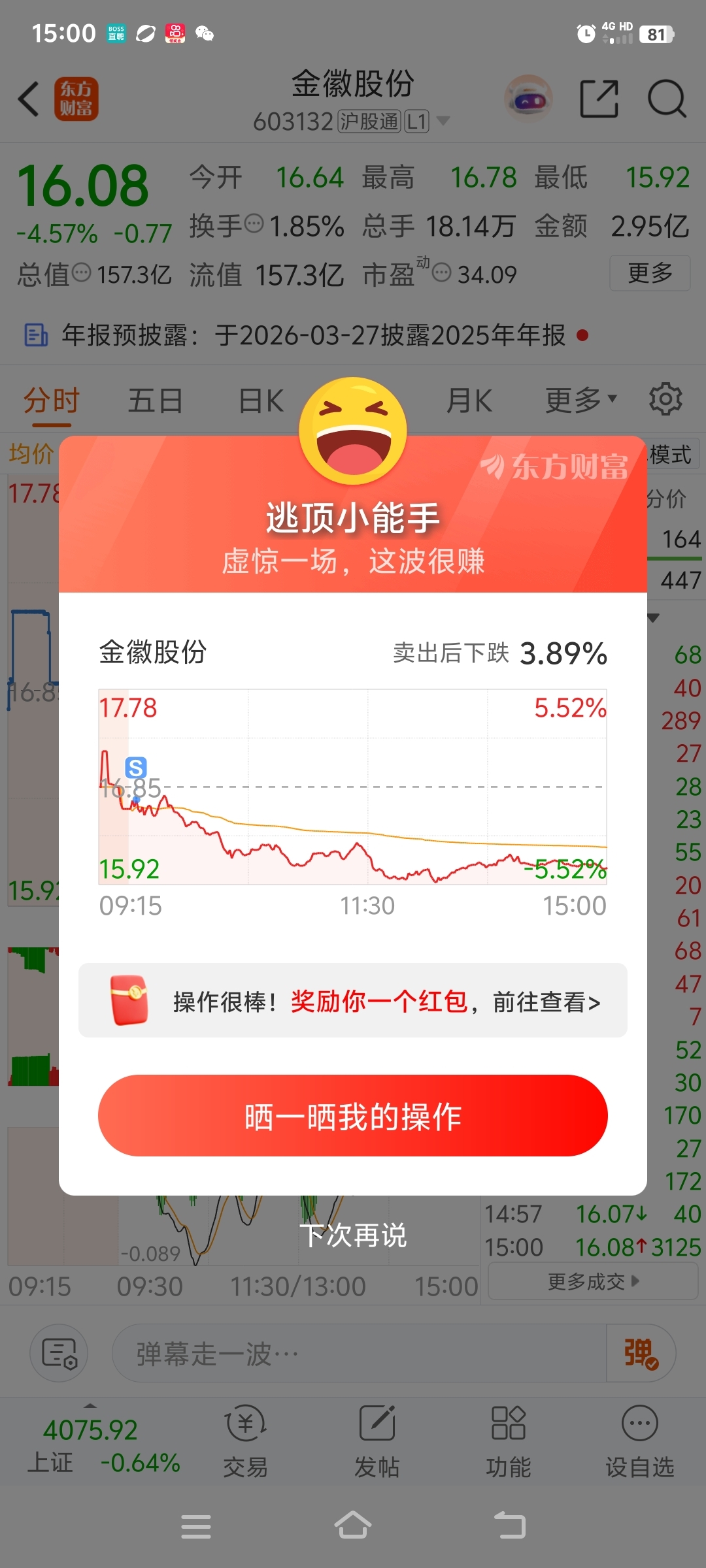 $金徽股份(SH603132)$ 辛好跑得快没格局