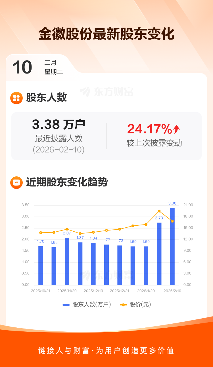 金徽股份:截至2月10日最新股东户数3.38万户,较上期增加24.17%