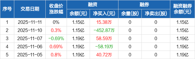 中重科技:融资净买入15.38万元,融资余额1.15亿元(11-11)