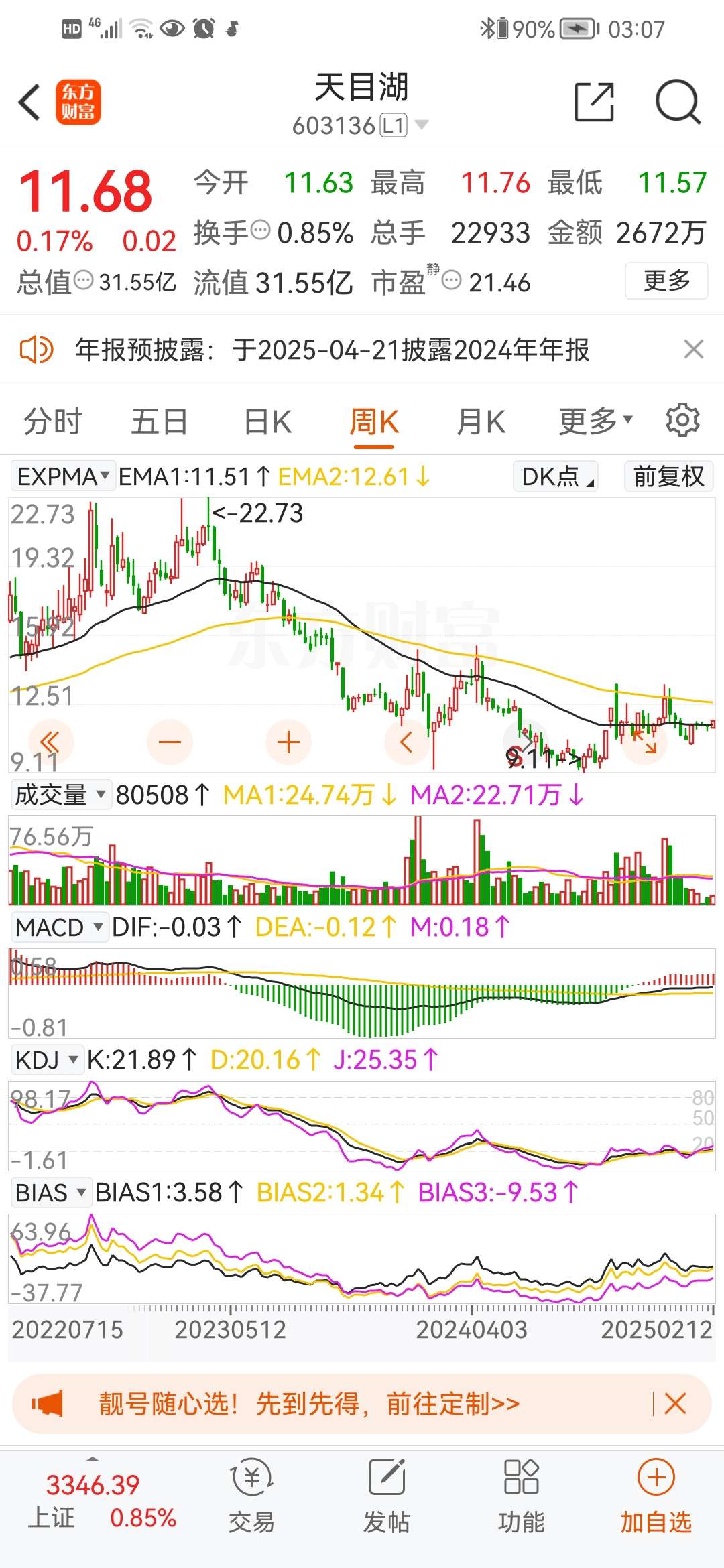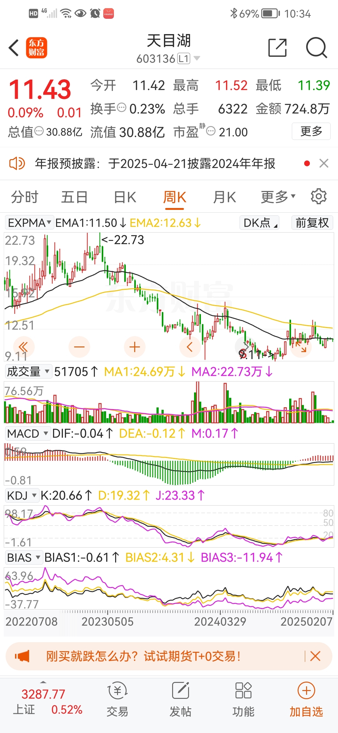 $天目湖(SH603136)$ #强势机会# 周线底背离!