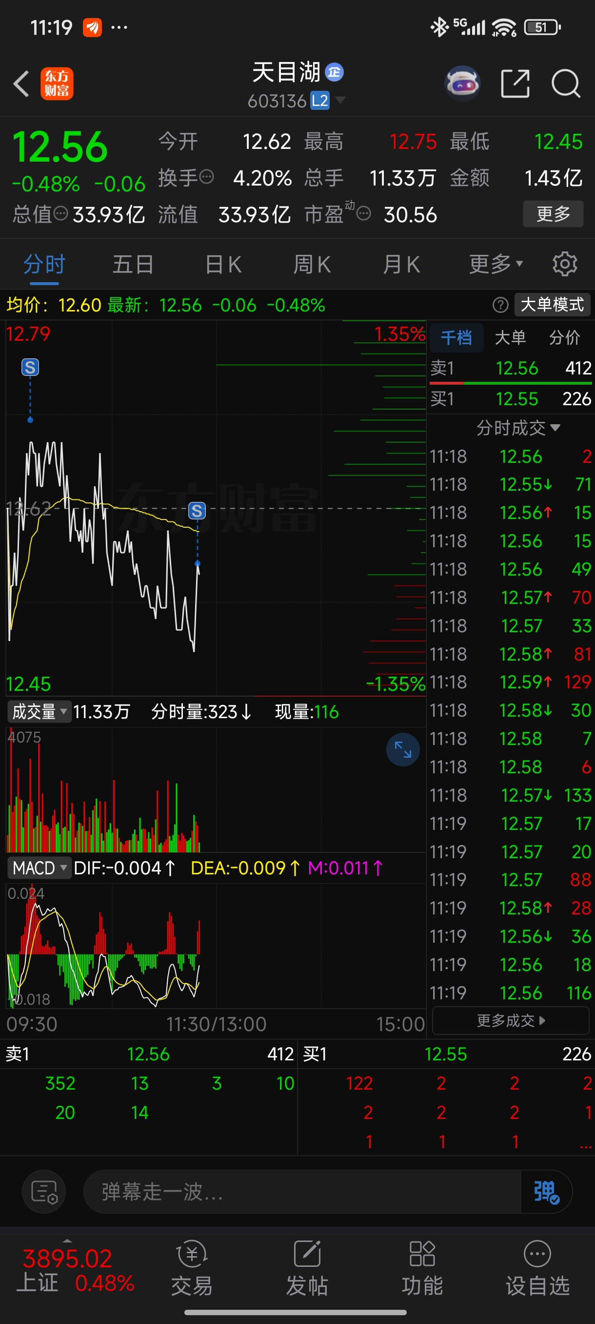 $天目湖(SH603136)$ 赚十几个点全清了!主力你可以拉了!