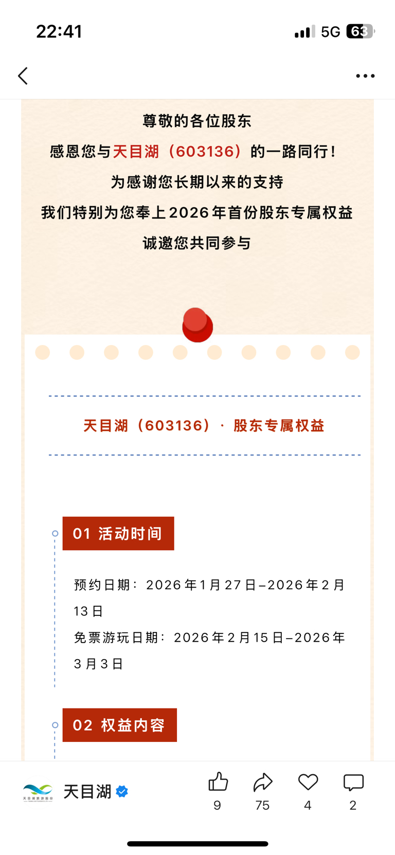 $天目湖(SH603136)$