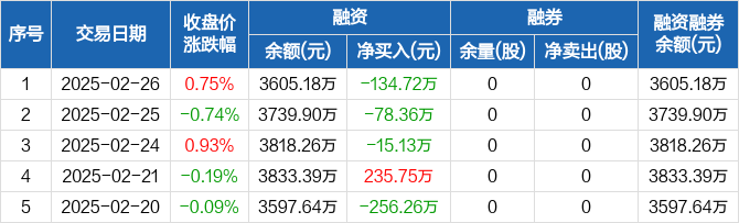 恒尚节能:连续3日融资净偿还累计228.21万元(02-26)