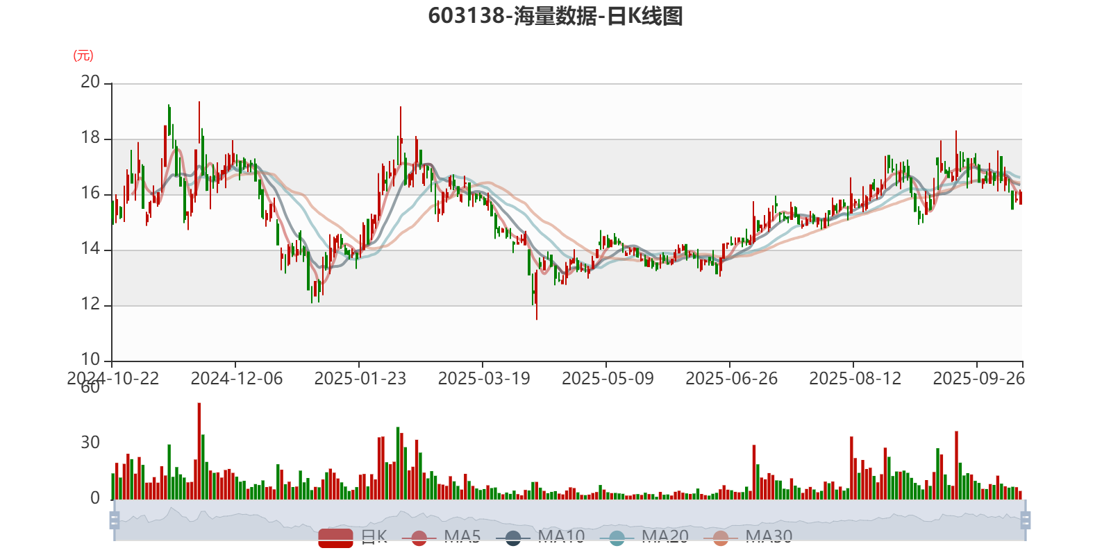以10月21日收盘价计算,海量数据目前市盈率(TTM)约为-49.62倍,市净率(LF)约6.16倍,市销率(TTM)约11.25倍。