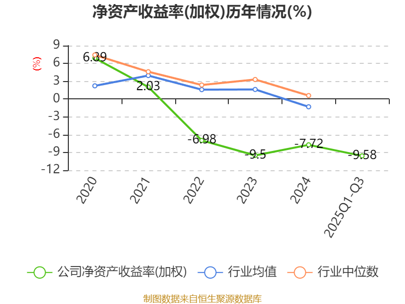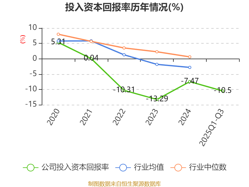 盈利能力方面, 2025年前三季度公司加权平均净资产收益率为-9.58%,同比下降3.8个百分点。公司2025年前三季度投入资本回报率为-10.5%,较上年同期下降3.98个百分点。