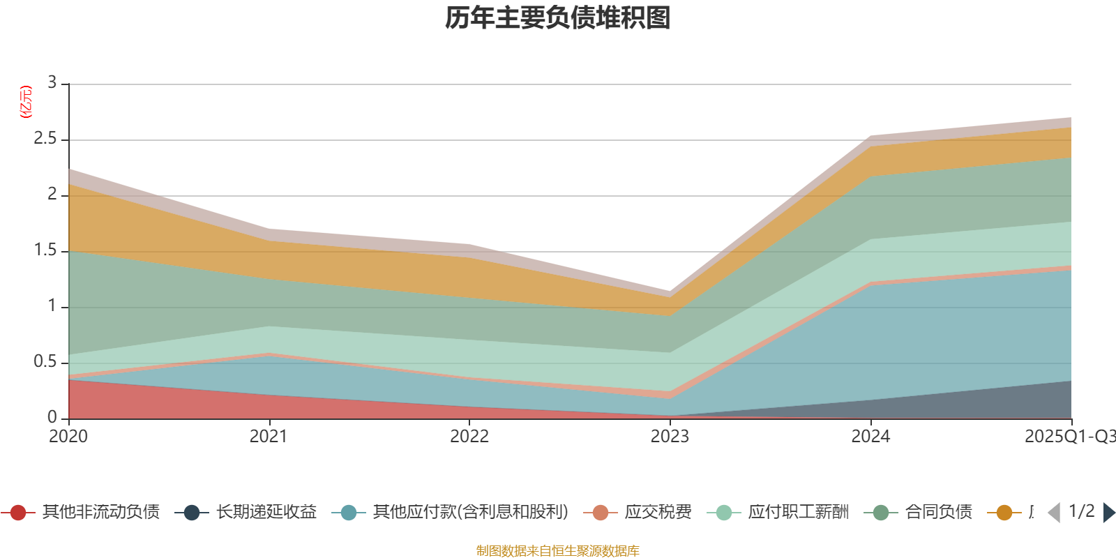 负债重大变化方面,截至2025年三季度末,公司长期递延收益较上年末增加107.19%,占公司总资产比重上升1.72个百分点;合同负债较上年末增加2.4%,占公司总资产比重上升0.28个百分点;应付职工薪酬较上年末增加2.57%,占公司总资产比重上升0.2个百分点;一年内到期的非流动负债较上年末减少26.11%,占公司总资产比重下降0.14个百分点。
