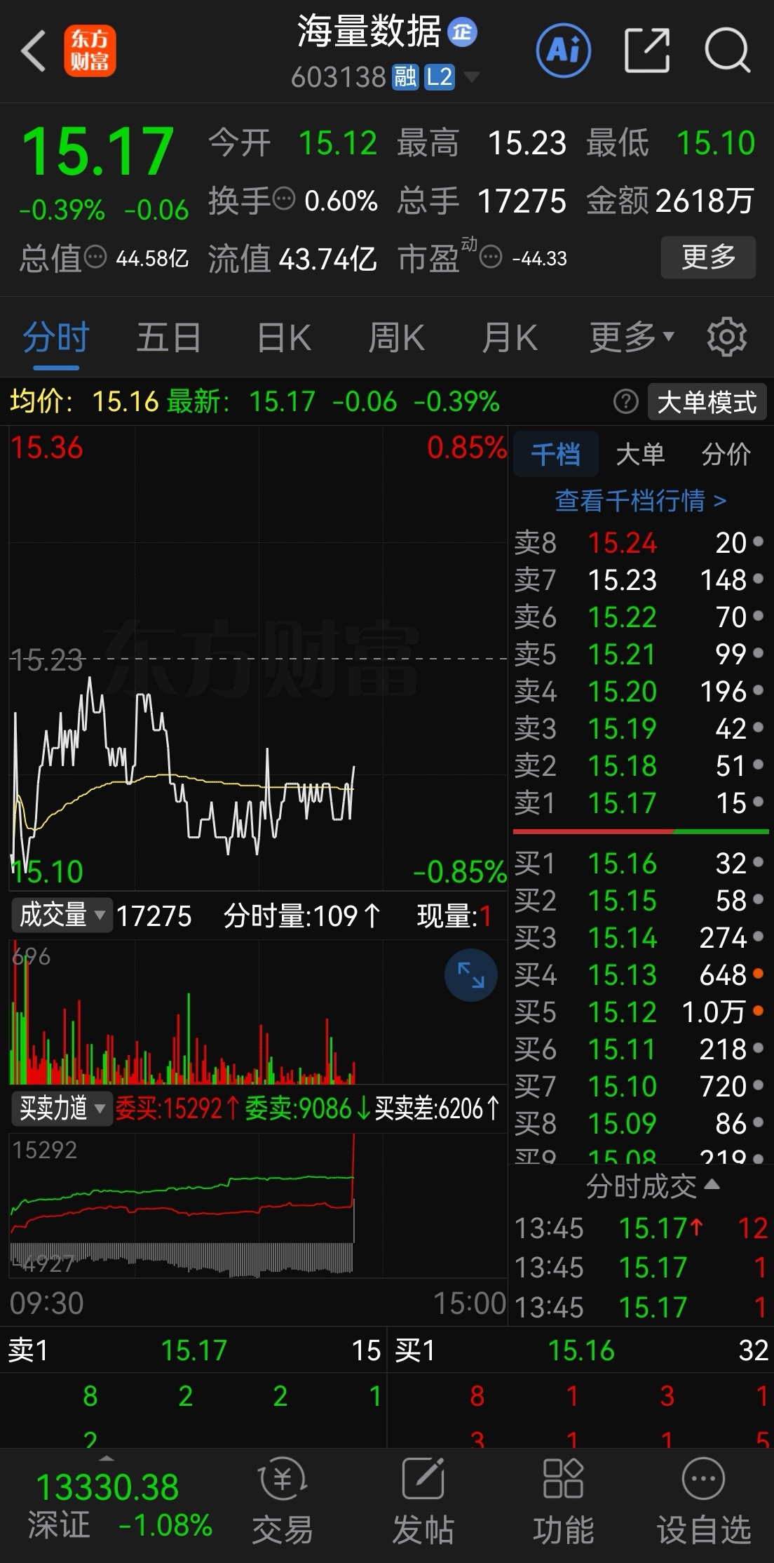 $海量数据(SH603138)$ 准备开始砸盘吗?