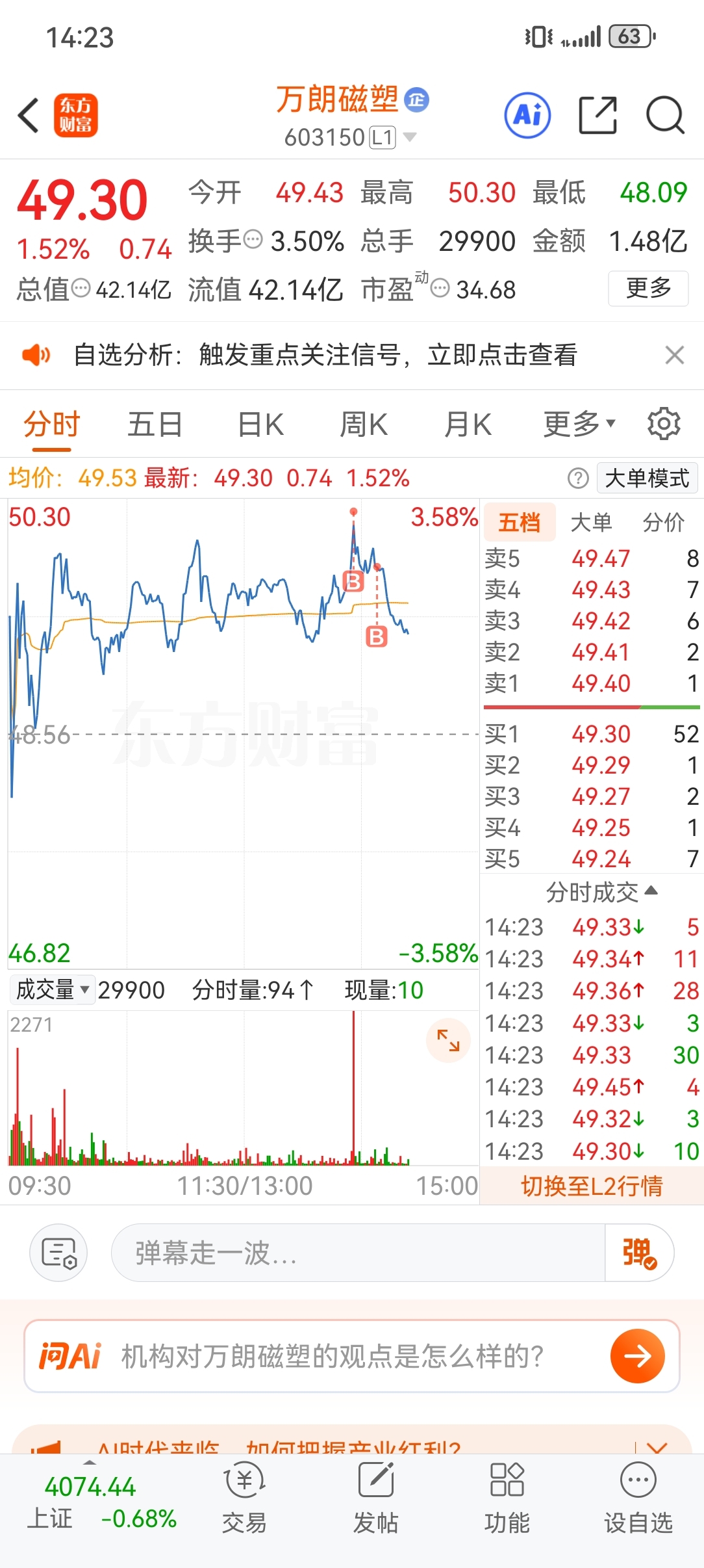 $万朗磁塑(SH603150)$ 这辈子还能解套吗
