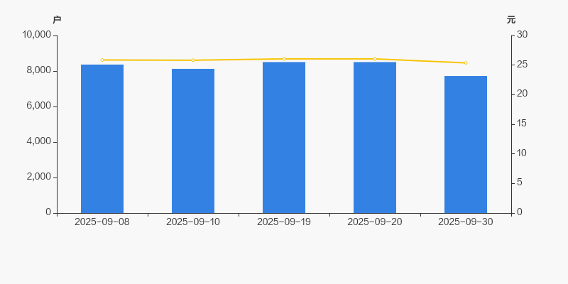 2025年9月8日至今,公司股东户数有所下降,区间跌幅为7.69%。2025年9月8日至2025年9月30日区间股价下降1.89%。