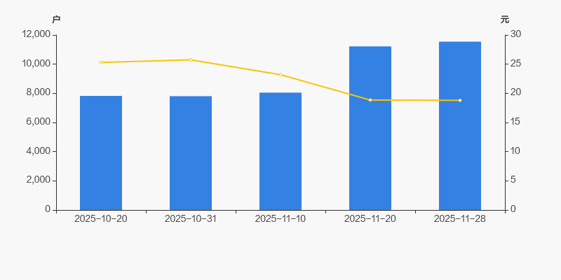 自2025年10月31日以来,公司股东户数连续3期上涨,截至目前增幅为47.91%。2025年10月31日至2025年11月28日区间股价下降26.96%。