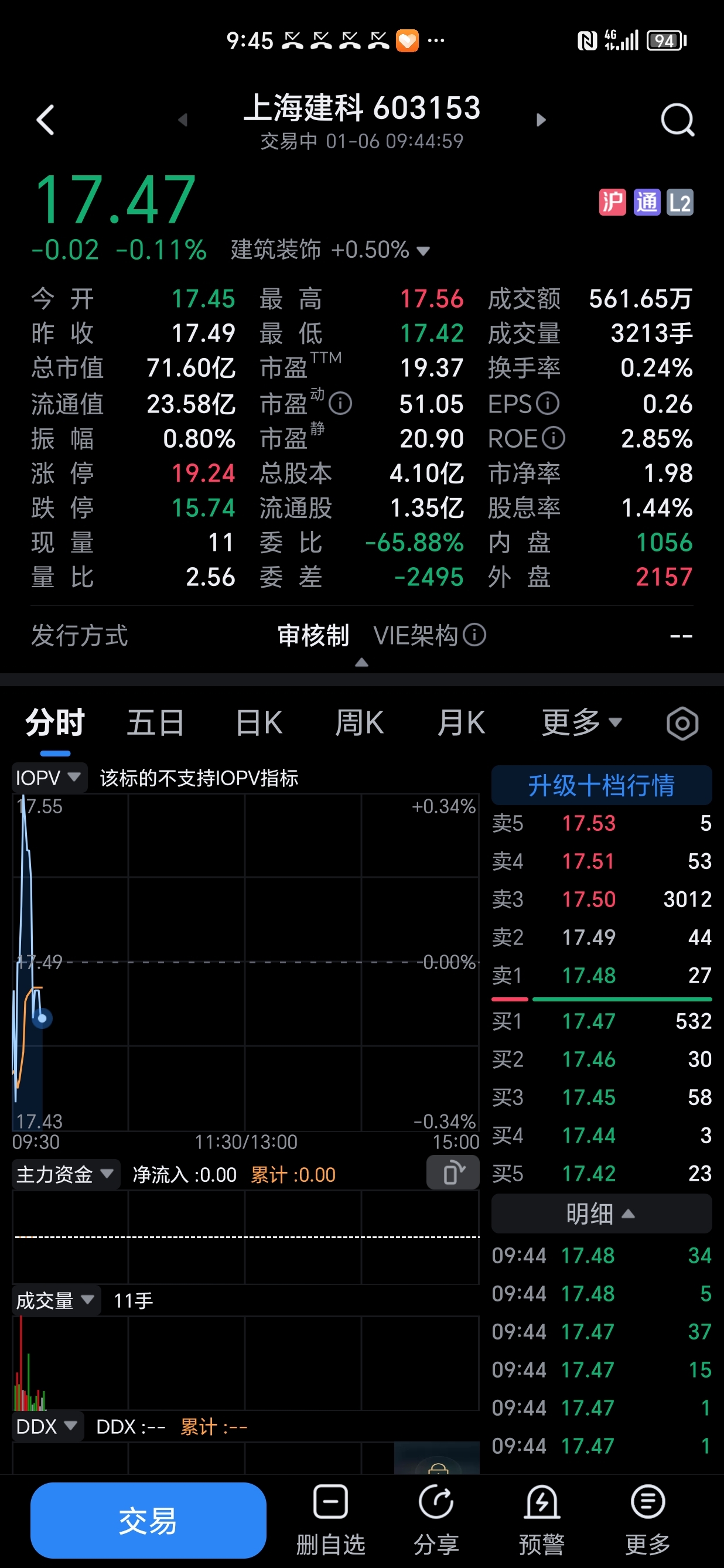 $上海建科(SH603153)$ 17.47托着。不给走这么快,用五千万压着,基本确认了,重组概率就是建科