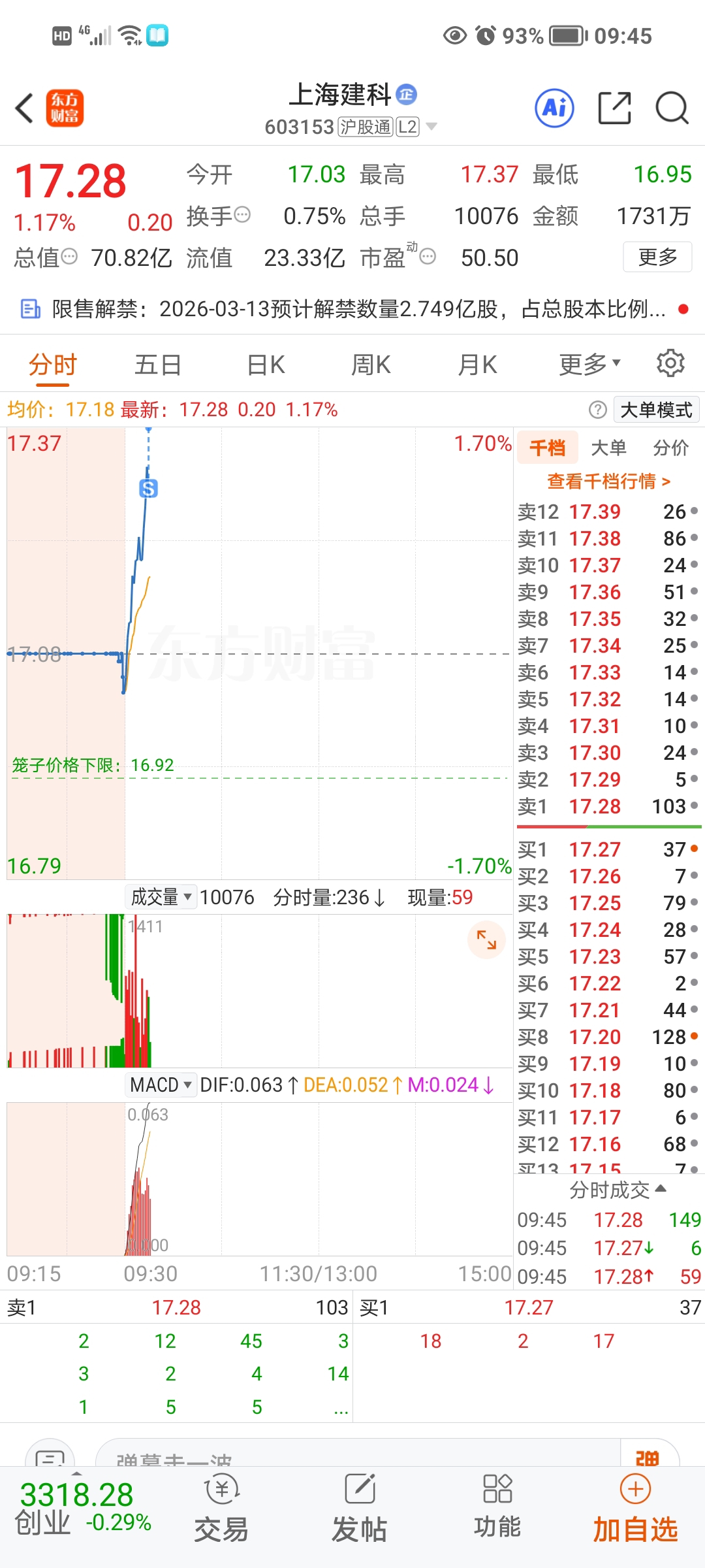 还好溜得快,尾盘不跌破17.11我再买回来