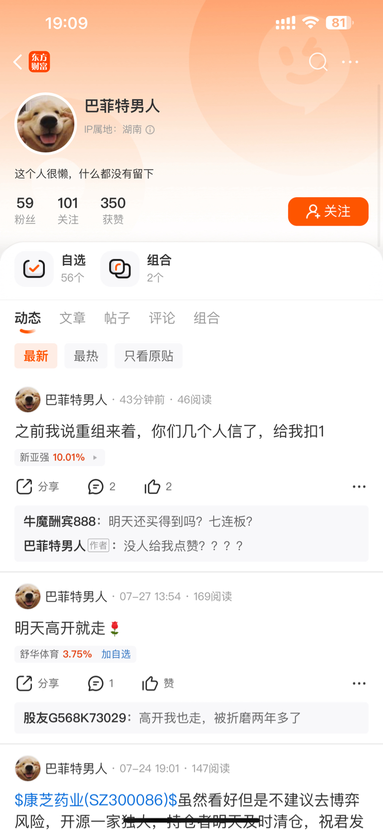 温馨提示: 1.根据《证券法》规定,禁止编造、传播虚假信息或者误导性信息,扰乱证券市场;2.用户在本社区发表的所有资料、言论等仅代表个人观点,与本网站立场无关,不对您构成任何投资建议。用户应基于自己的独立判断,自行决定证券投资并承担相应风险。《东方财富社区管理规定》