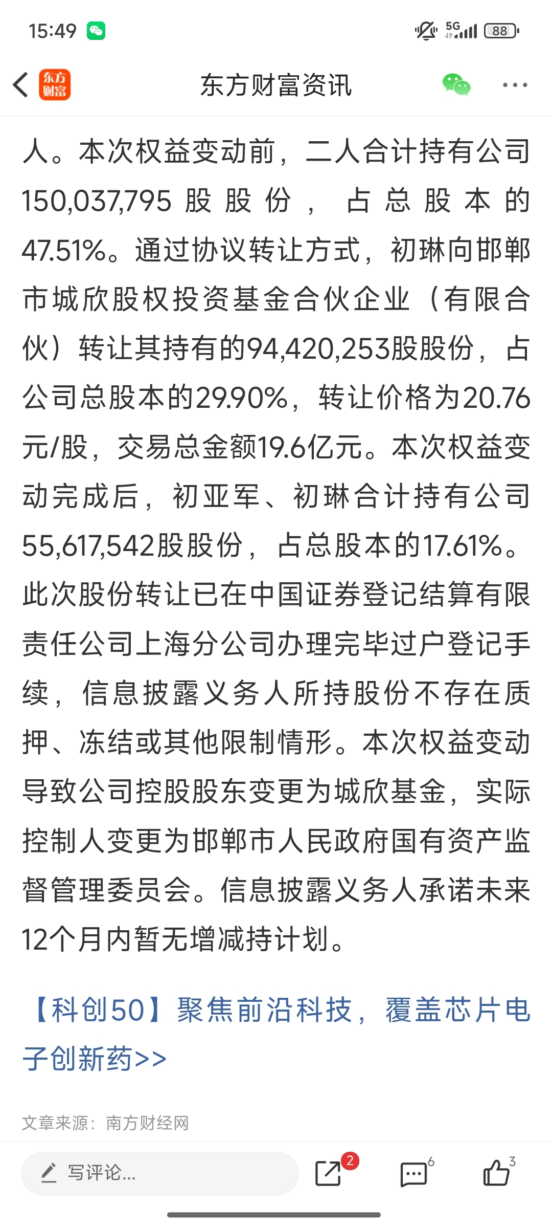 你们都不看公告的吗?都已经过户了,就等上交所批复呢!钱都已经给了