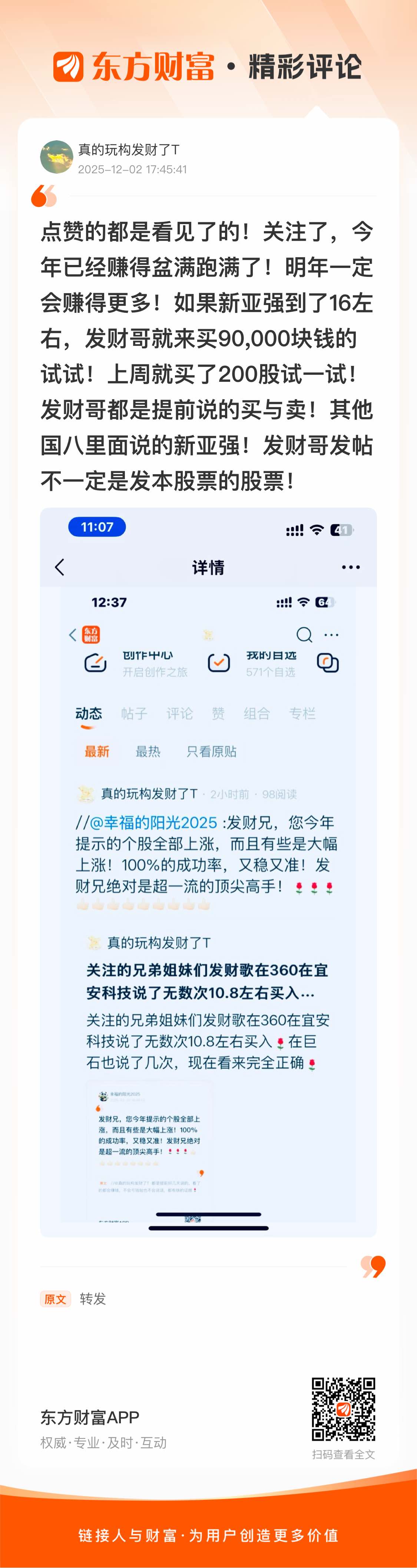 温馨提示: 1.根据《证券法》规定,禁止编造、传播虚假信息或者误导性信息,扰乱证券市场;2.用户在本社区发表的所有资料、言论等仅代表个人观点,与本网站立场无关,不对您构成任何投资建议。用户应基于自己的独立判断,自行决定证券投资并承担相应风险。《东方财富社区管理规定》