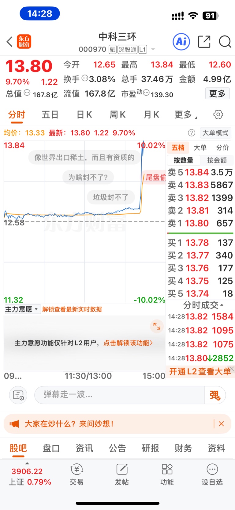 温馨提示: 1.根据《证券法》规定,禁止编造、传播虚假信息或者误导性信息,扰乱证券市场;2.用户在本社区发表的所有资料、言论等仅代表个人观点,与本网站立场无关,不对您构成任何投资建议。用户应基于自己的独立判断,自行决定证券投资并承担相应风险。《东方财富社区管理规定》