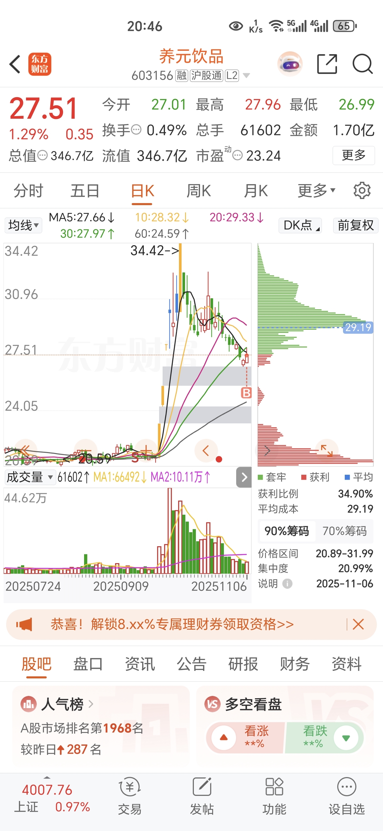 $养元饮品(SH603156)$ 别人恐惧我贪婪,全仓就是干