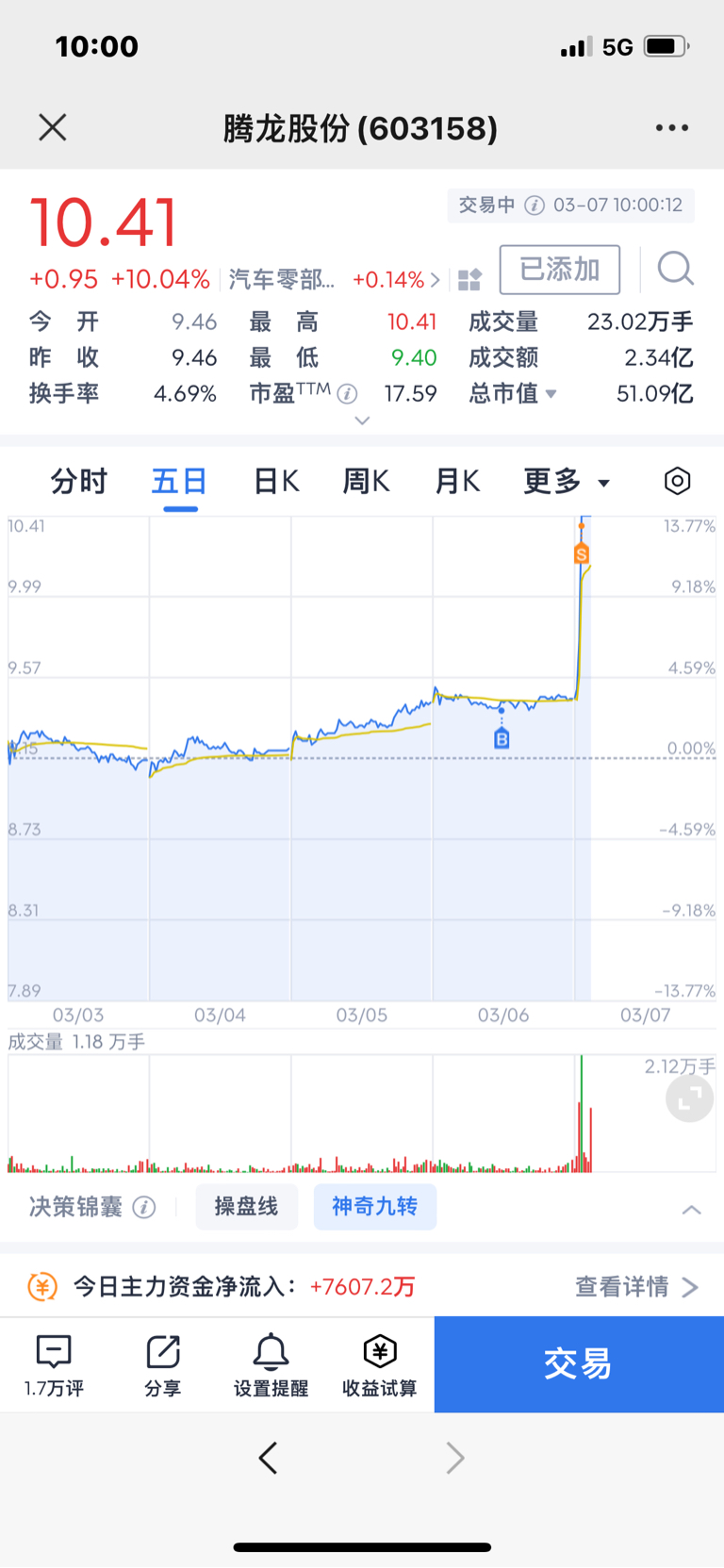 $腾龙股份(SH603158)$ 多谢大龙